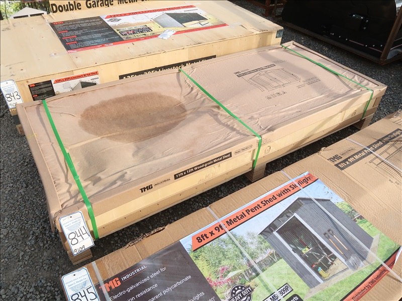 12'L X 11'W WOOD GRAIN METAL SHED (UNUSED)