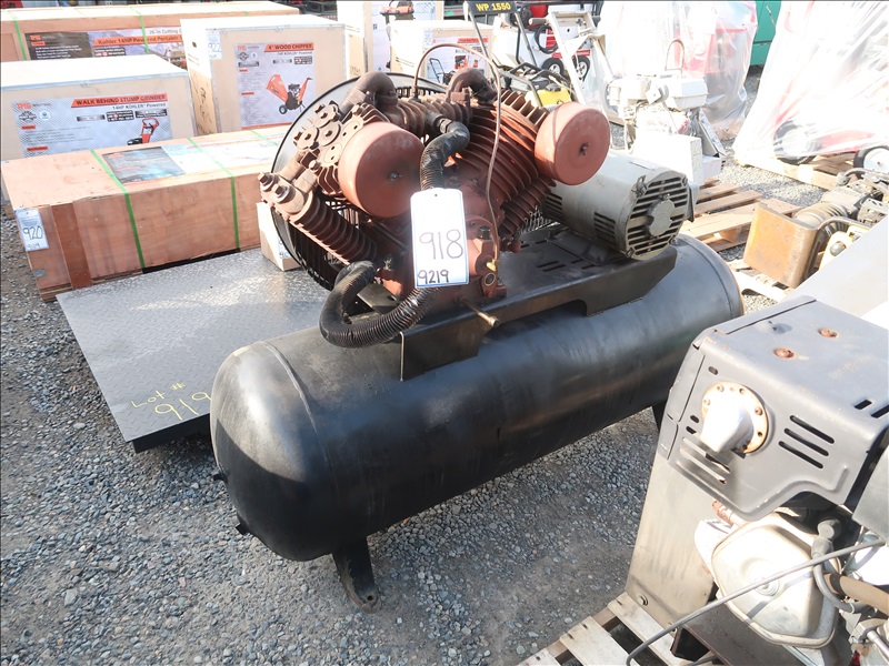 BELT DRIVEN ELECTRIC AIR COMPRESSOR, 10 HP WESTINGHOUSE AC MOTOR, 230/460V, 3 PHASE (MISSING PARTS, CONDITION UNKNOWN)