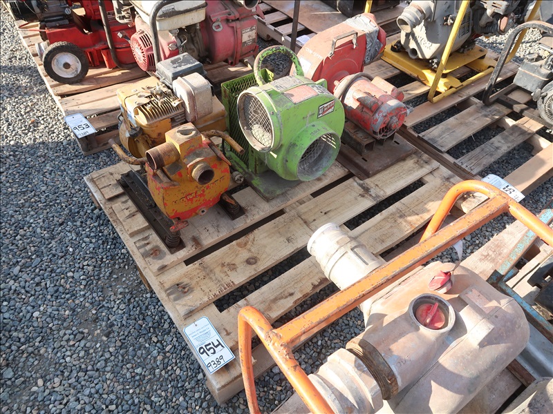 LOT, (2) ELECTRIC PORTABLE BLOWERS & (1) PORTABLE GAS TRASH PUMP ON THIS PALLET