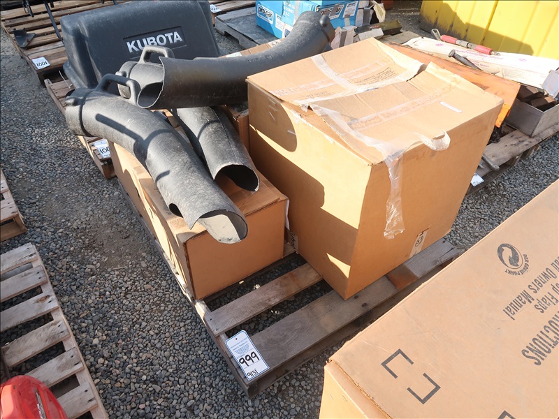 LOT, ASSORTED HUSQVARNA SERVICE KITS, TRACTOR COMPONENTS & (1) HONDA MARINE ENGINE HANGER ON THIS PALLET