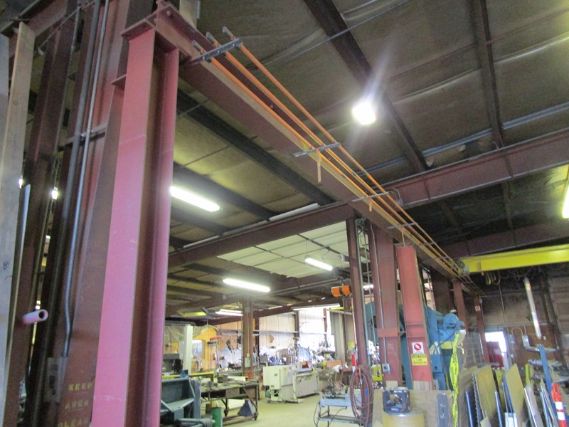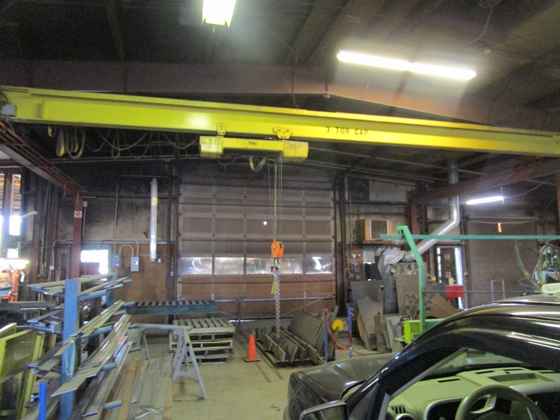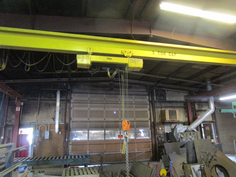 FREE STANDING 3 TON OVERHEAD BRIDGE CRANE W/YALE 3 TON UNDERSLUNG HOIST, PENDANT CONTROL, SELF SUPPORTING 32' WIDE X 50' LENGTH, (4) SUPPORTING COLUMNS, ALL BOLTED STEEL