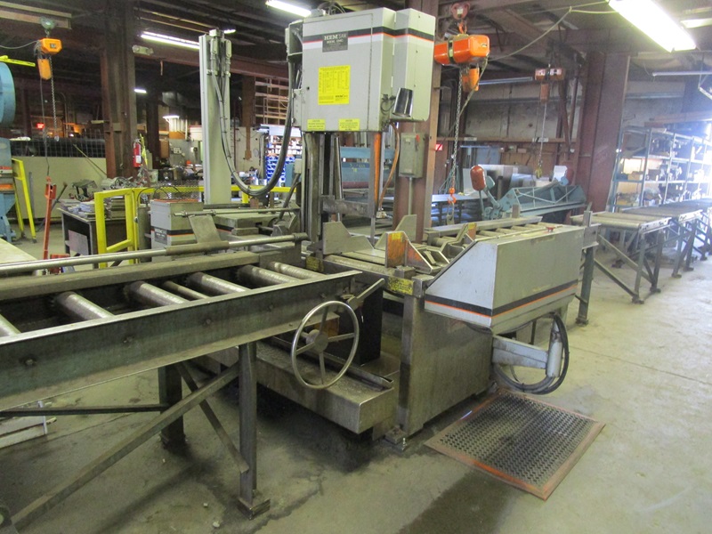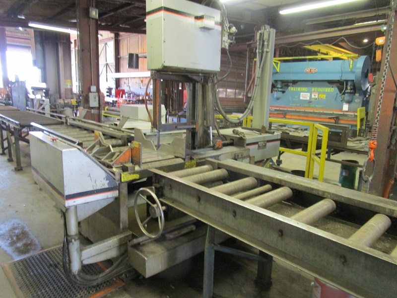 VERTICAL ADJUSTABLE MITER BANDSAW W/MATERIAL CLAMP INFEED/OUTFEED ROLLCASE, S/N: 588697