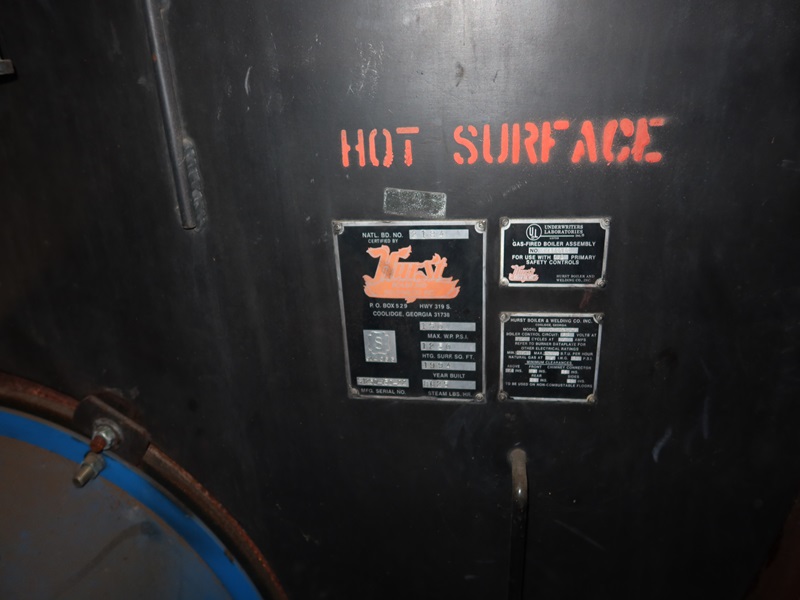 GAS FIRED STEAM BOILER, 150 MAX WP, 8625 STEAM LBS PER HOURS, S/N: S1250-150-22