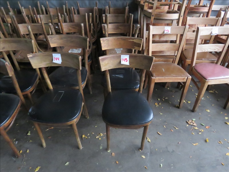 LOT, (8) WOOD FRAMED PADDED PATIO CHAIRS (SOME NEED REPAIR)