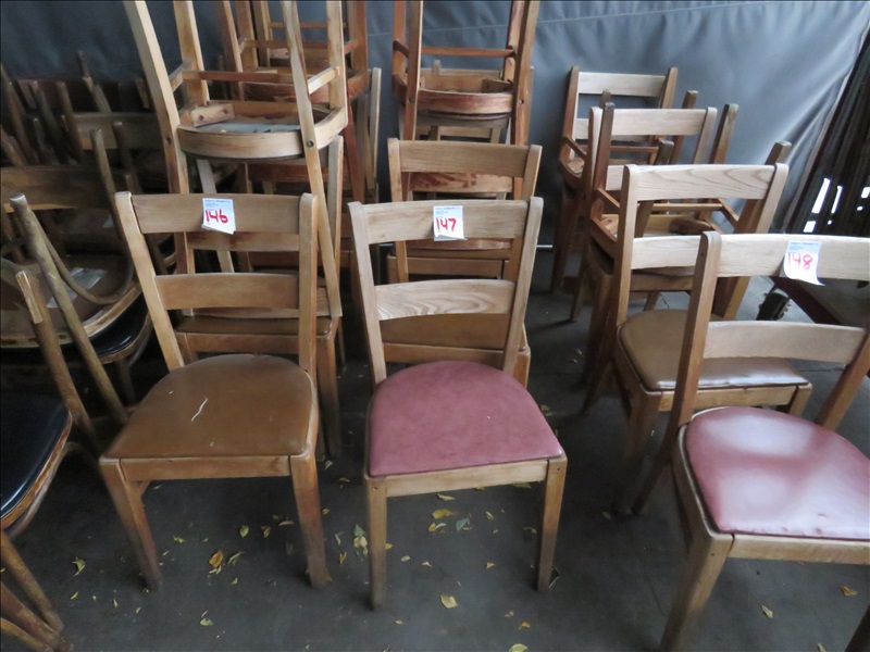 LOT, (6) WOOD FRAMED PADDED PATIO CHAIRS