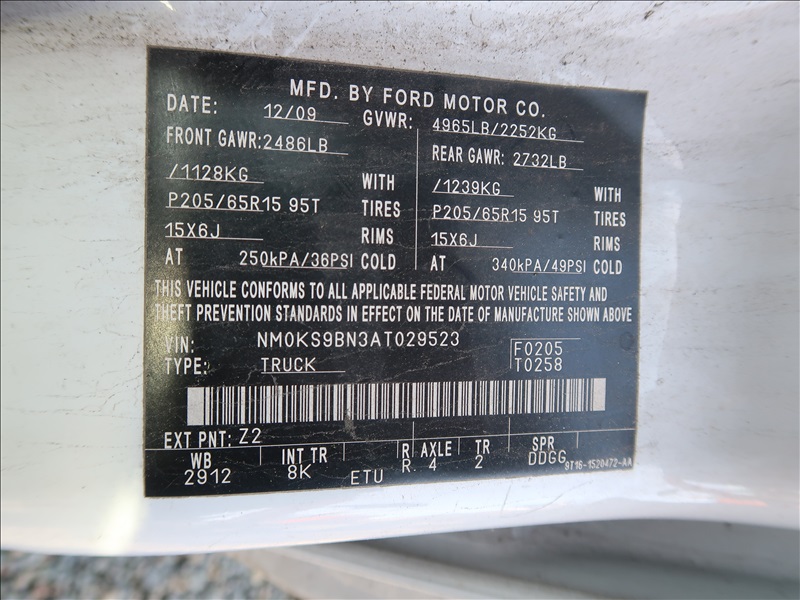 2010 FORD TRANSIT CARGO VAN