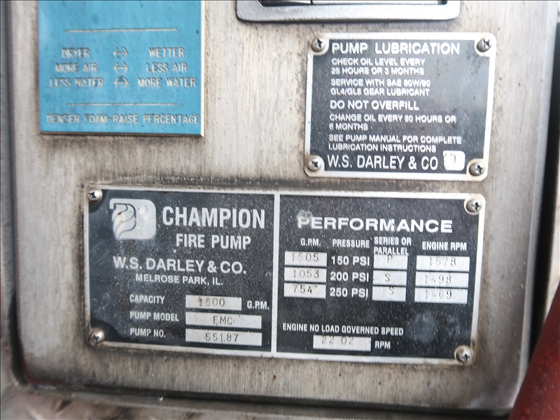 PUMPER TRUCK, 1,500 GPM, DETROIT SERIES 60, AUTO