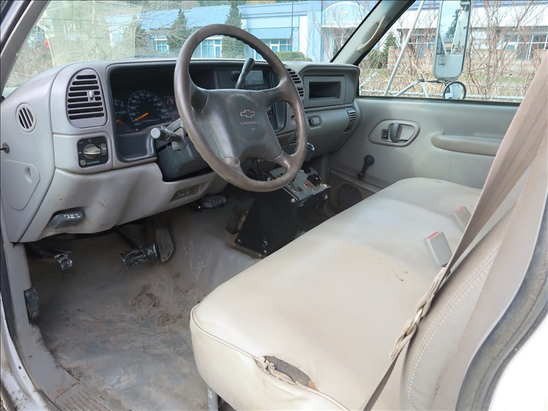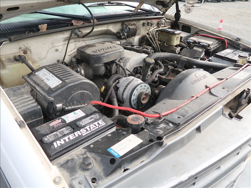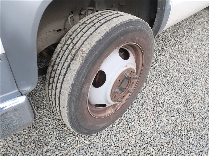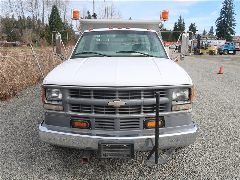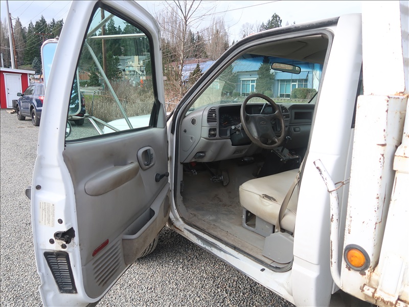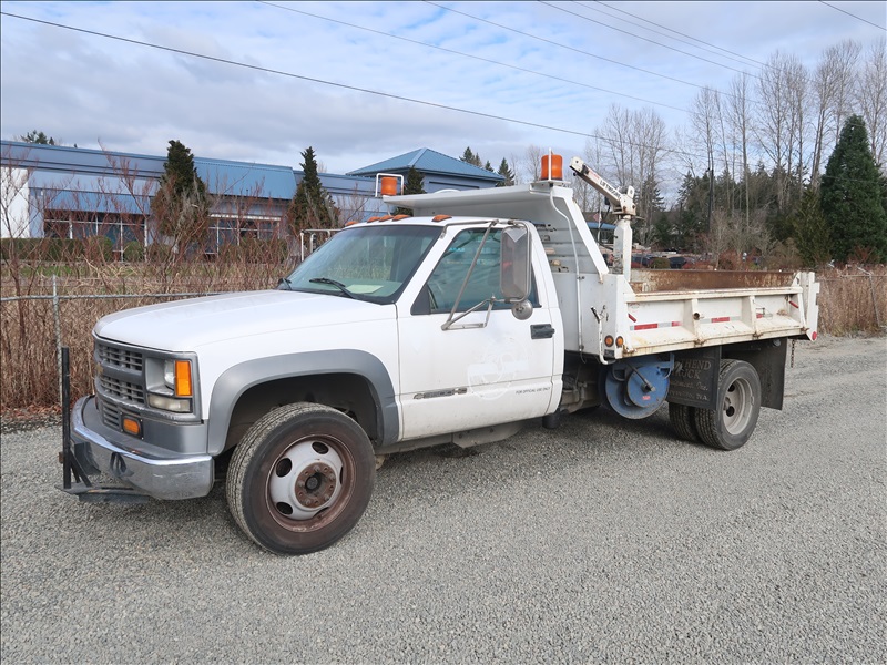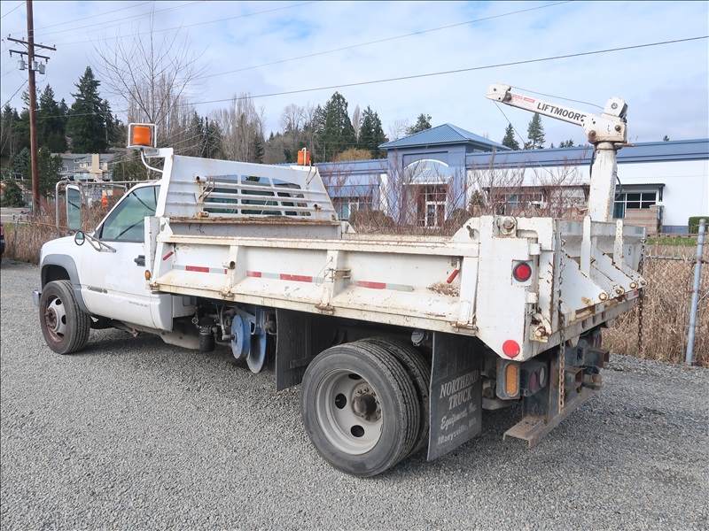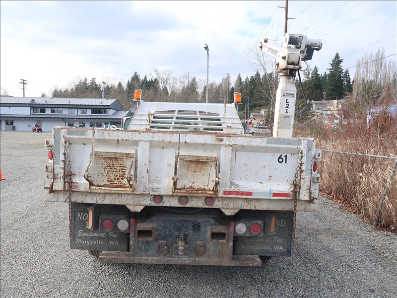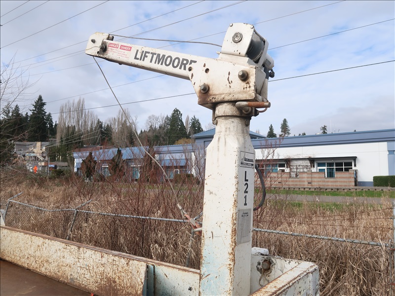 10' FLATBED/DUMP, LIFTMOORE CRANE, V8, AUTO