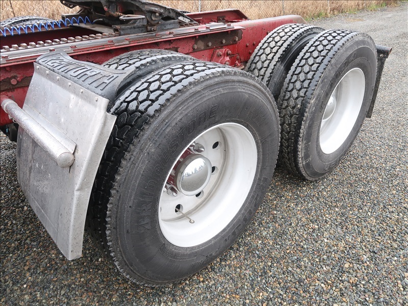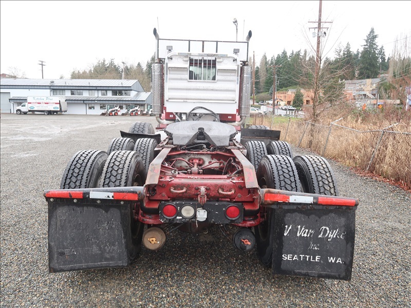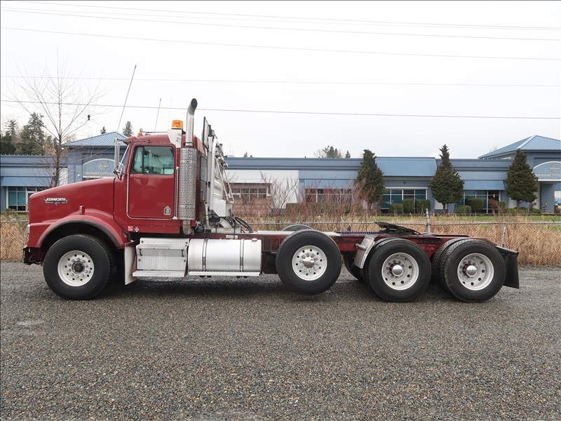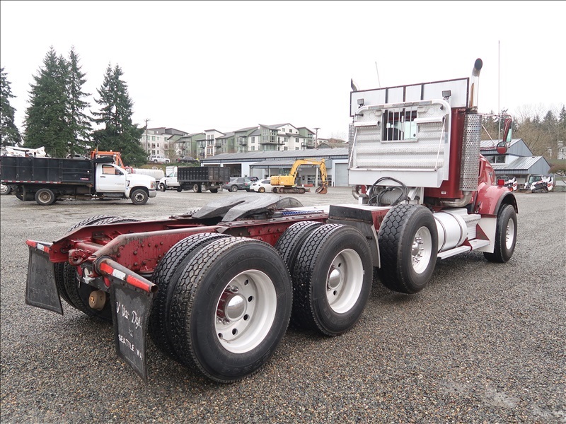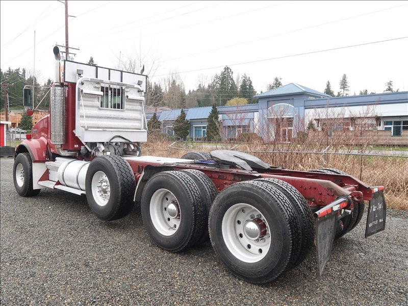 TRI/A DAY CAB TRACTOR, 460 HP, CUMMINS N14, 18 SPD, 8 BAG SUSPENSION, 239" W/B, 20,000 LB FRONT, 46,000 LB REARS, 4.33 RATIO, DROP AXLE 21,000 LB, LOCKER, 2 SPD REAR END, DUAL STEER BOX, SLIDER, AUTO SIGN, 11R24.5, 425/65R22.5
