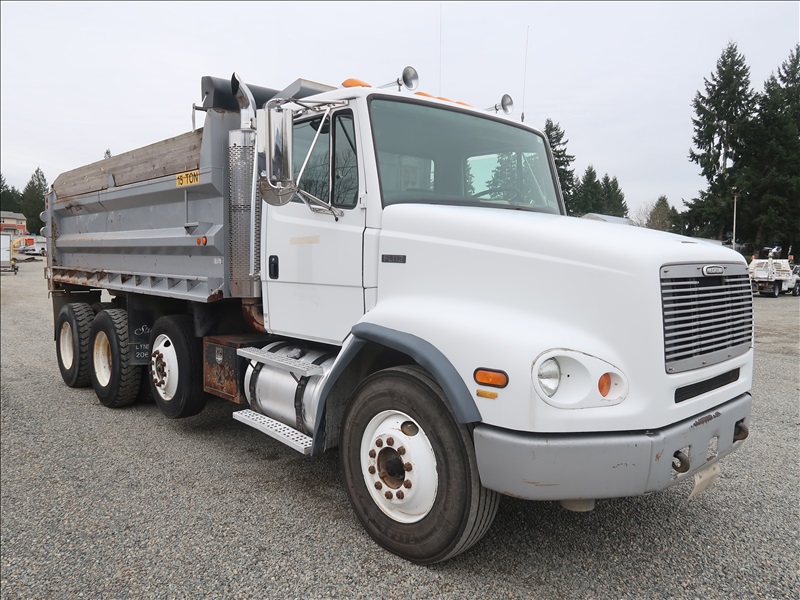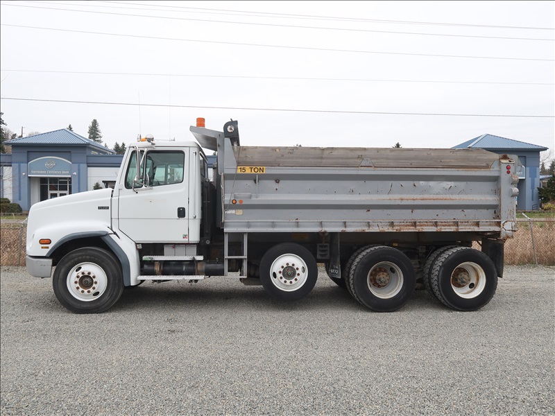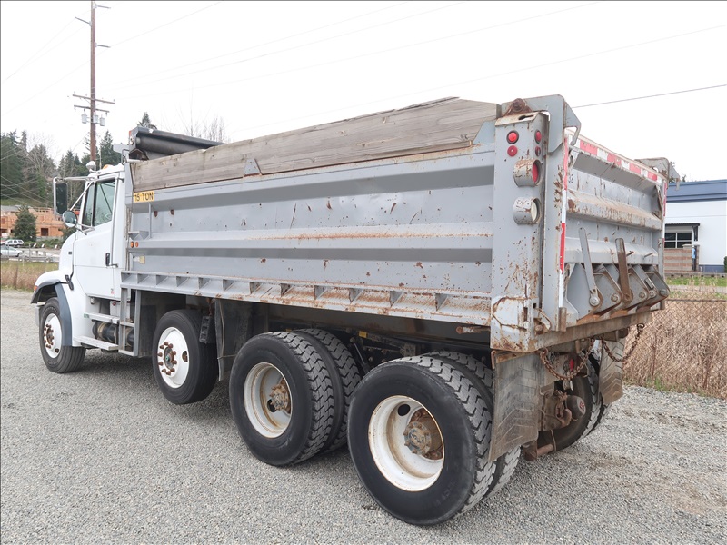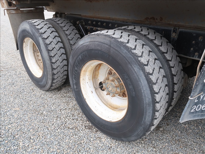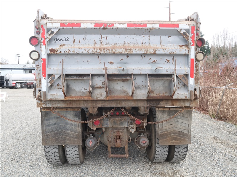 TRI/A, DUMP TRUCK, 14' STEEL BOX, TARP SYSTEM, 370 HP, CUMMINS M11, AUTO, CHALMERS SUSPENSION, 210" W/B, 13,220 LB FRONT, 40,000 LB REARS, DROP AXLE, PLUMBED FOR PUP, ASPHALT GATES