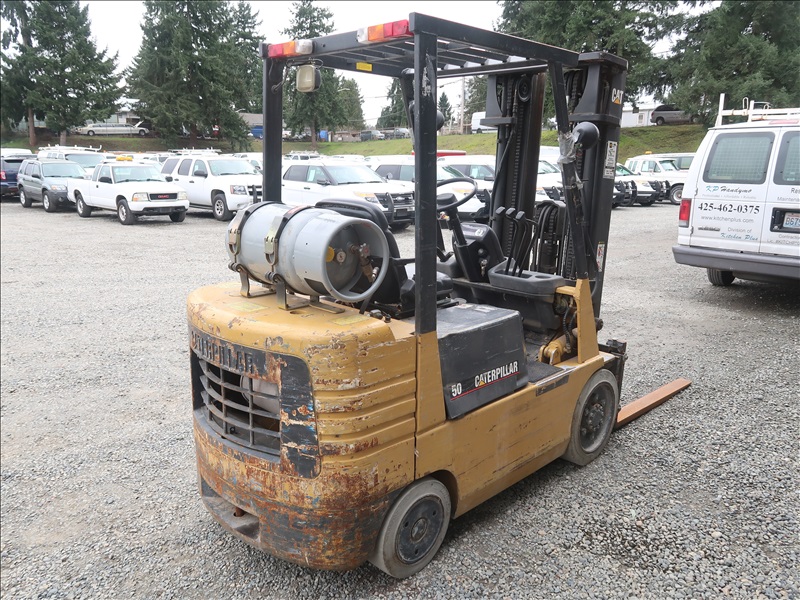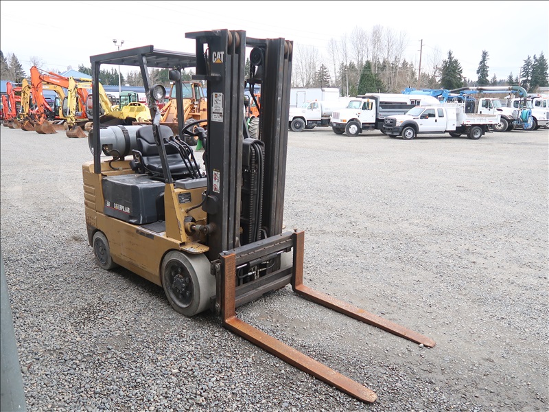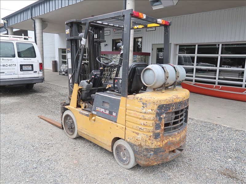 5,000 LB HRT FORKLIFT, 190" FORK HEIGHT, 3-STAGE MAST, SIDE SHIFT, 4 CYL PROPANE (IDLES AT HIGH RPM, NEEDS REPAIR)