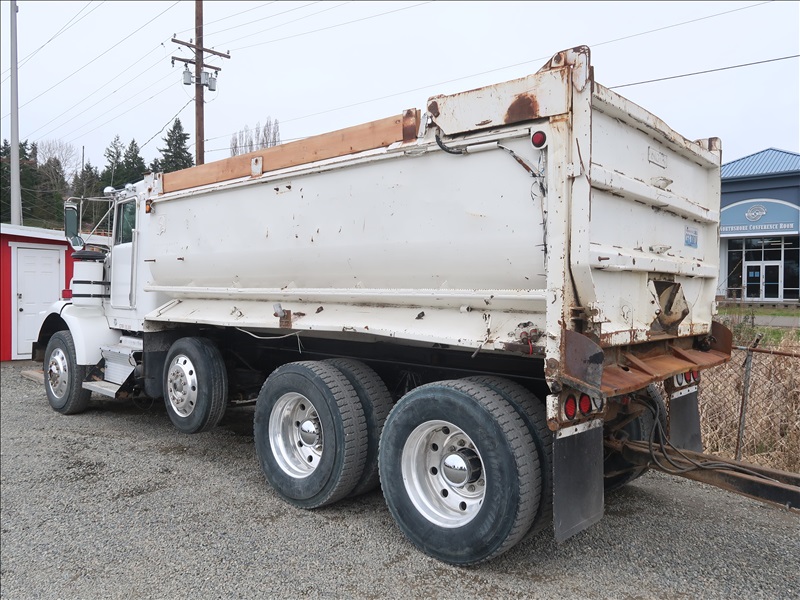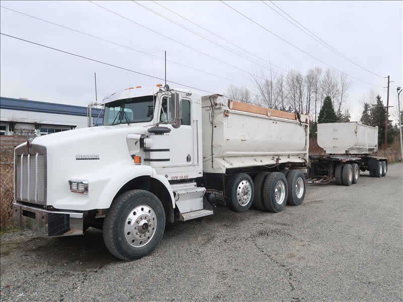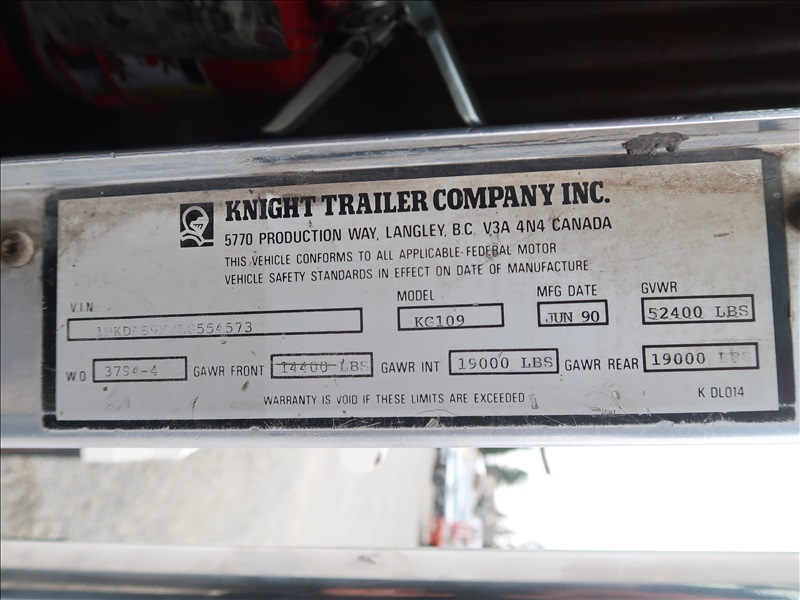 TRI/A TRANSFER TRUCK, 15' STEEL BOX, HIGH LIFTGATE, CAT 3406B, 8LL SPD, BLOCK BEAM SUSPENSION, 246" W/B, 4.56 RATIO, LOCKER, DROP AXLE W/1990 KNIGHT KG286 QUAD/A TRANSFER TRAILER, 15'6" STEEL BOX, S/N: 2X9DP4482LL036104