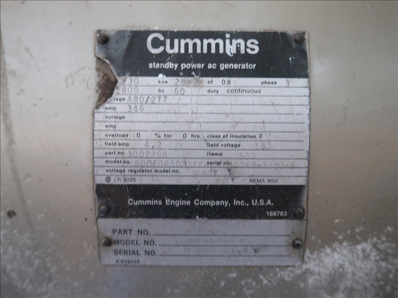 S/A, 27' VAN TRAILER, LIFTGATE, REAR ROLL UP DOOR, SPRING SUSPENSION, A/B W/CUMMINS 288 KVA 277/480V, 3 PHASE, CUMMINS NT-855-GS, 6 CYL DIESEL (MISSING ENGINE, ELECTRICAL & GENERATOR PARTS, DOES NOT RUN OR OPERATE, PLEASE PREVIEW)