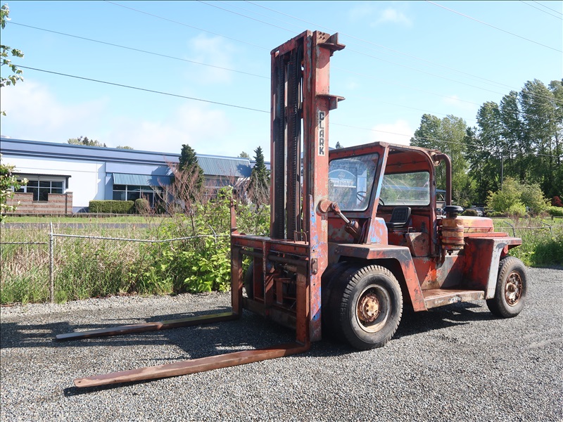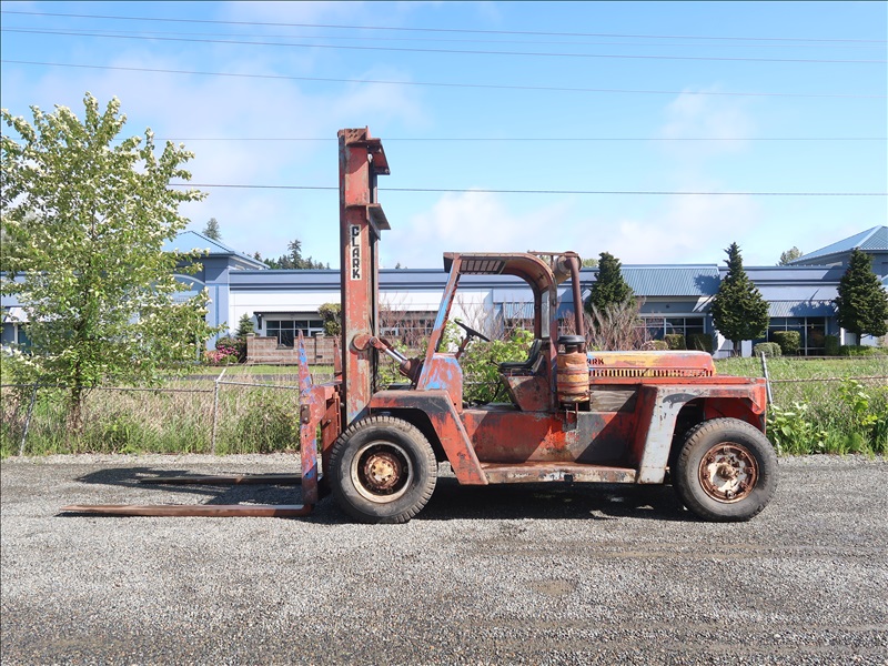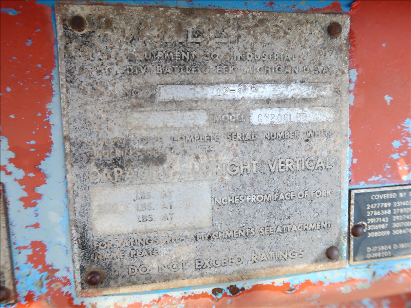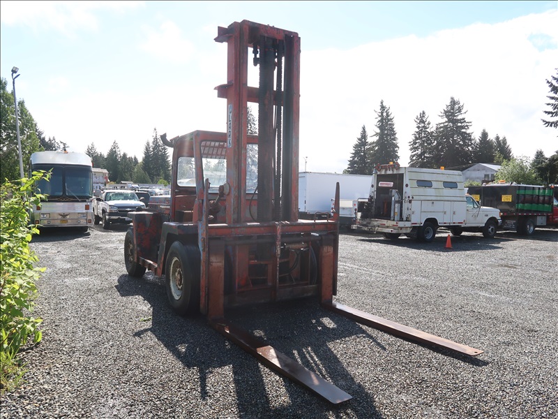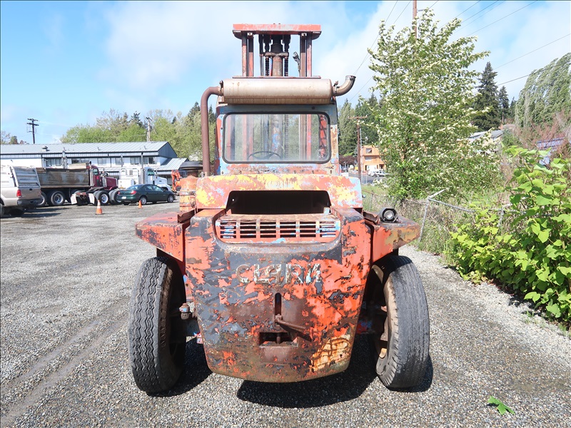 19,000 LB DUAL PNEUMATIC TIRE FORKLIFT, 210" FORK HEIGHT, 2-STAGE MAST, SIDE SHIFT, 8' FORKS, DETROIT 4 CYL DIESEL