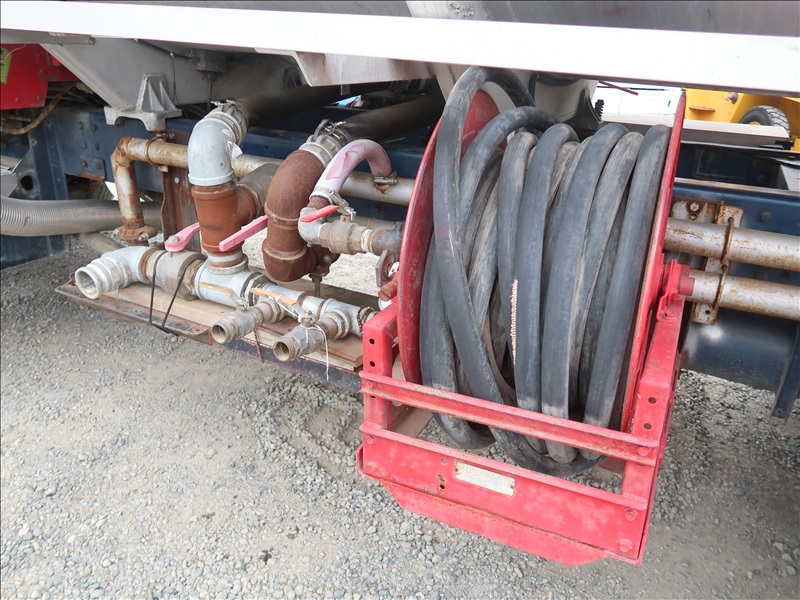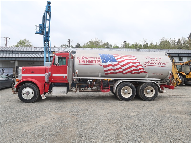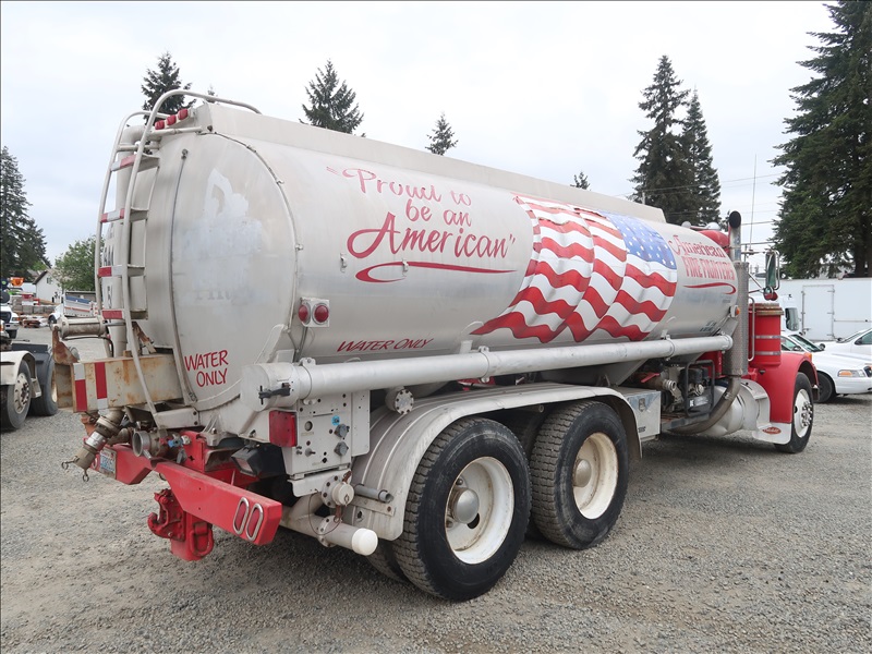 T/A 4,500 GAL WATER TRUCK, DETROIT SILVER 92, 13 SPD, 1 CYL PUMP, FRONT, SIDE, REAR SPRAY FIRE TENDER HOSE REEL