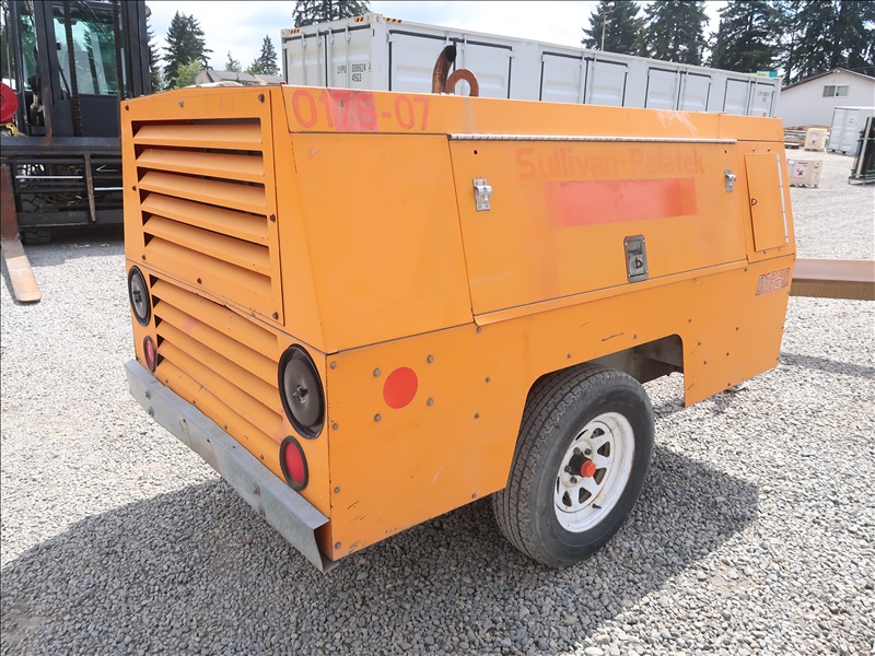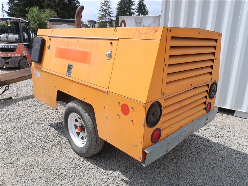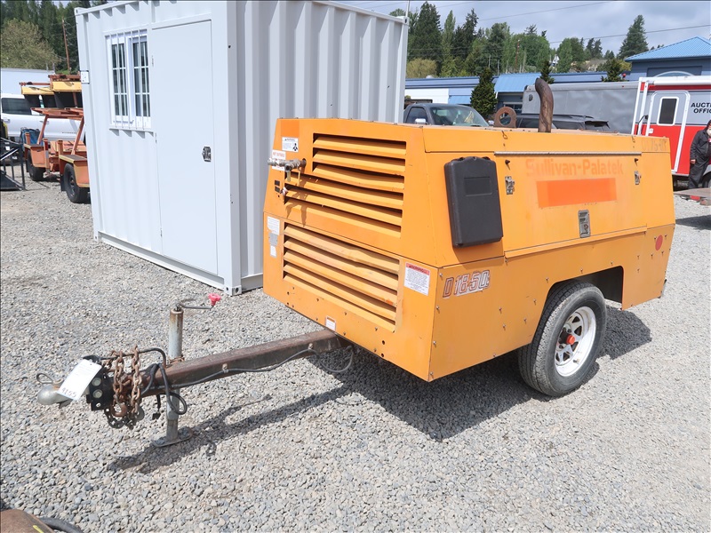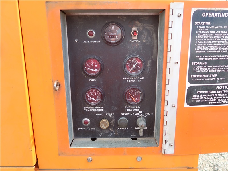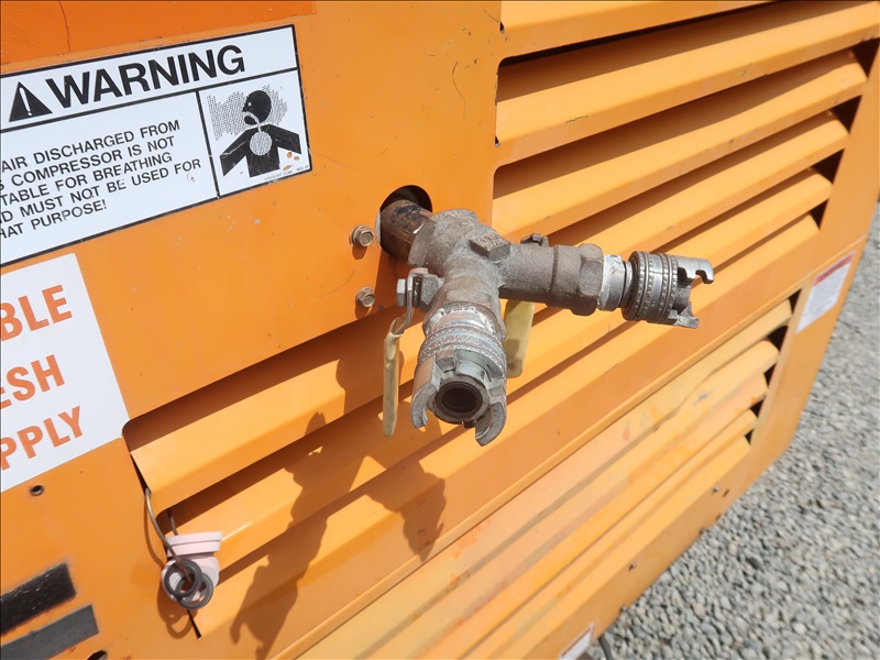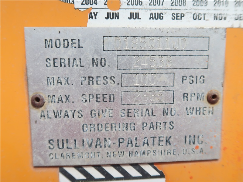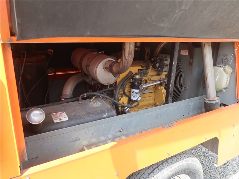 S/A 185 CFM TRAILER MOUNTED AIR COMPRESSOR, JOHN DEERE 4 CYL DIESEL ENGINE, HOUR METER READS: 5,011 (RUNS & OPERATES)