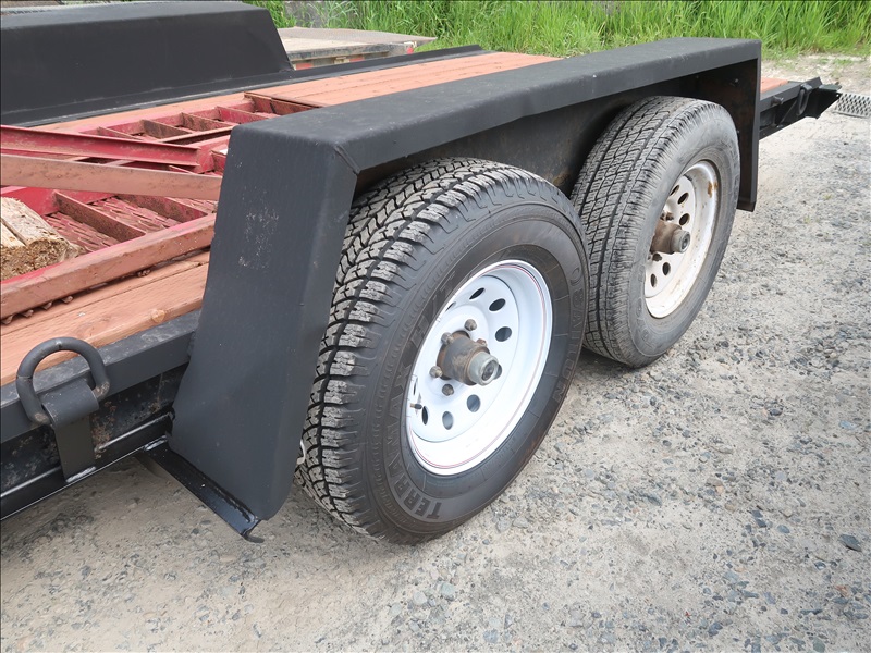 T/A, 20' 15,300 LB GVWR FLATBED TRAILER, E/B, RAMPS, (2) SPARE TIRES, 245/75R16
