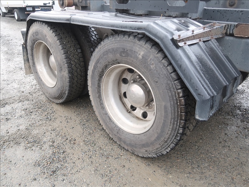 TRI/A CUMMINS 6 CYL DIESEL, 13 SPD, STELLAR HOOK LIFT TRUCK, DROP AXLE