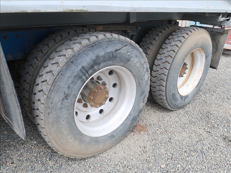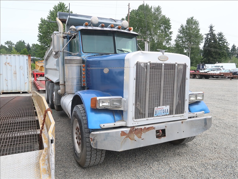 TRI/A DUMP TRUCK, 15' STEEL BOX, TARP SYSTEM, CAT 3406E, 15 SPD, CHALMERS SUSPENSION, 256" W/B, 12,000 LB FRONT, 38,000 LB REARS, DROP AXLE, PLUMBED FOR PUP