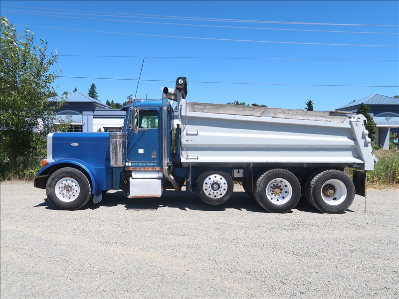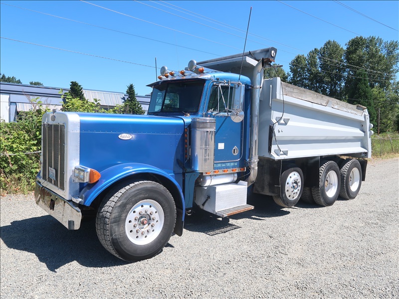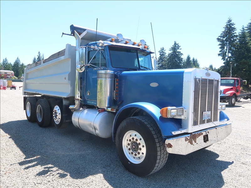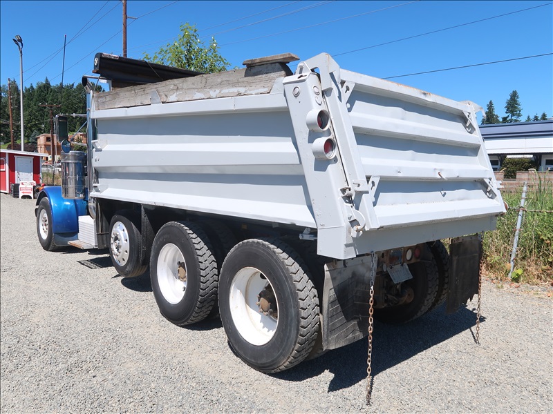 TRI/A DUMP TRUCK, 15' STEEL BOX, TARP SYSTEM, CAT 3406, 15 SPD, CAMELBACK SUSPENSION, 256" W/B, 12,000 LB FRONT, 38,000 LB REARS, DROP AXLE, PLUMBED FOR PUP (**TITLE BRANDED "REBUILT"**)