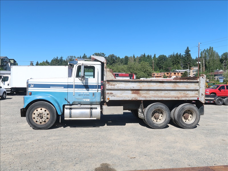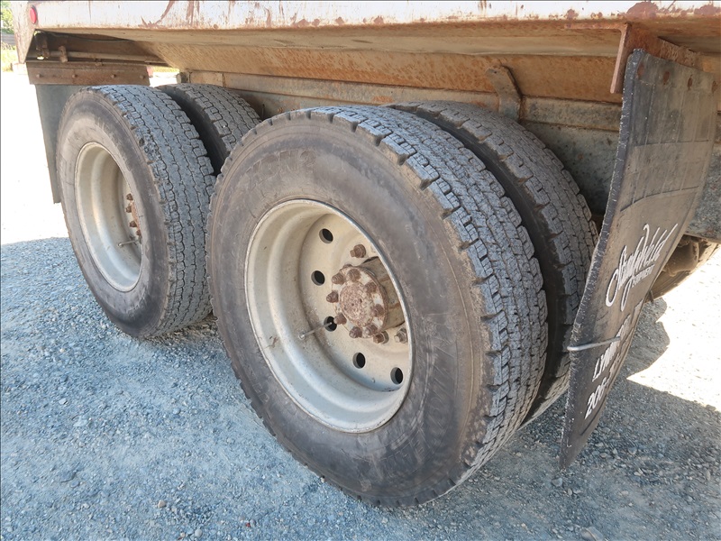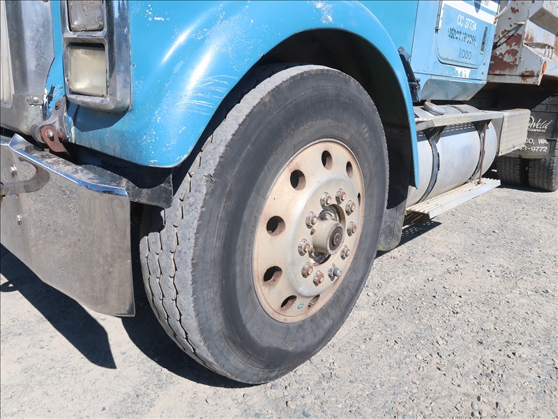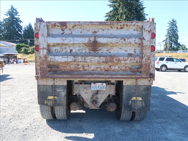 T/A DUMP TRUCK, 14' STEEL BOX, 400 HP CUMMINS NTC 400, 13 SPD, BLOCK BEAM SUSPENSION, 210" W/B, 12,000 LB FRONT, 19,000 LB REARS