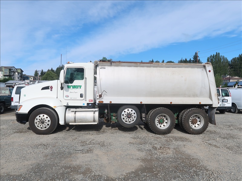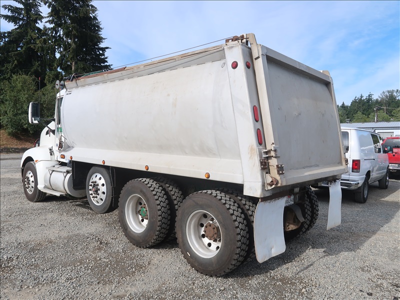 TRI/A DUMP TRUCK, 15' ALUMINUM BOX, TARP SYSTEM, 455 HP PACCAR 6 CYL DIESEL, 10 SPD, 8 BAG SUSPENSION, 209" W/B, 13,200 LB FRONT, 40,000 LB REARS, 3.55 RATIO, DROP AXLE