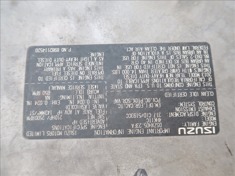 SWEEPER, 4HK1TC, AUTO, TYMCO 210, AUX 4 CYL DIESEL (CHECK ENGINE LIGHT IS ON)