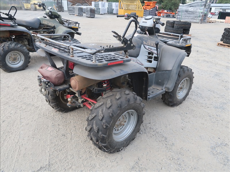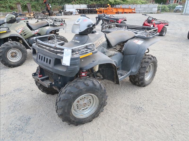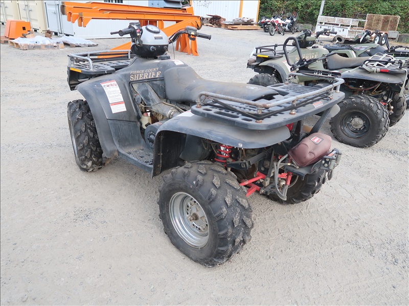 4X4, 600 CC TWIN CYL ENGINE, AUTO, ATV, WARN 2,500 LB WINCH (BROKEN FRONT SUSPENSION, CONDITION UNKNOWN, PLEASE PREVIEW)