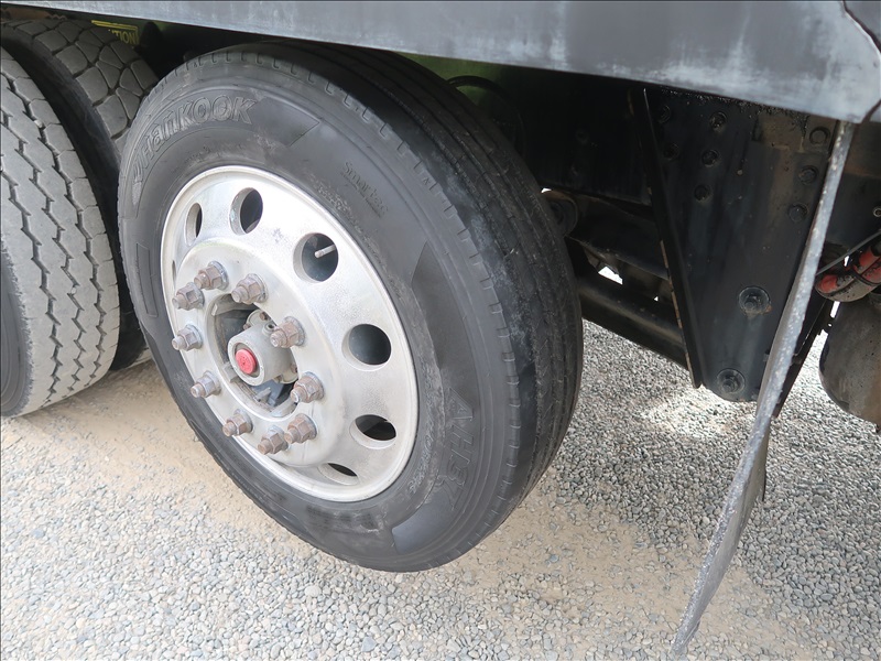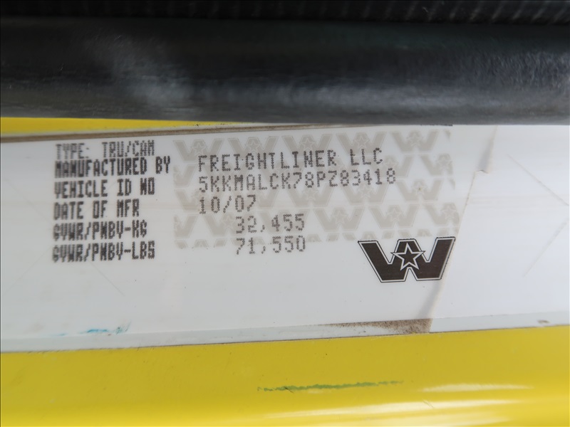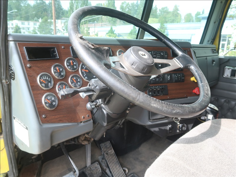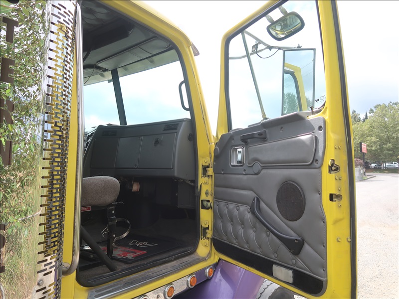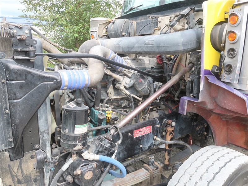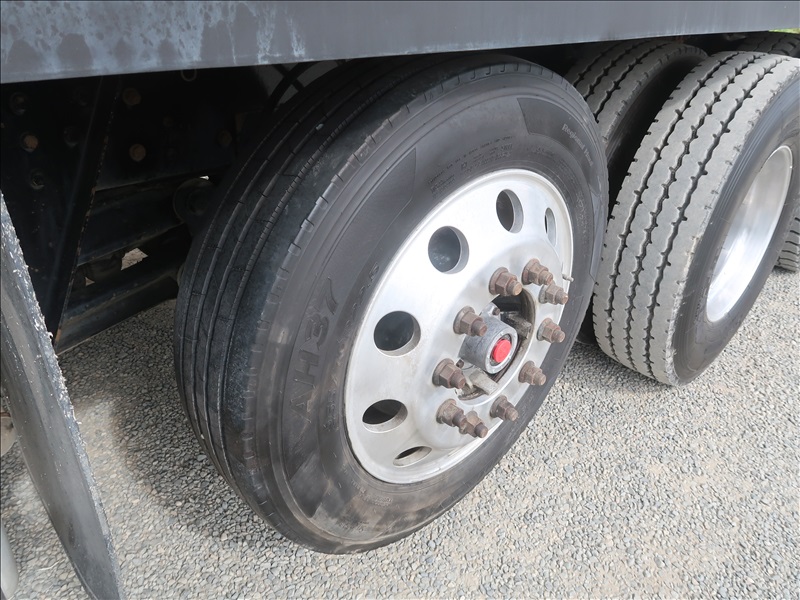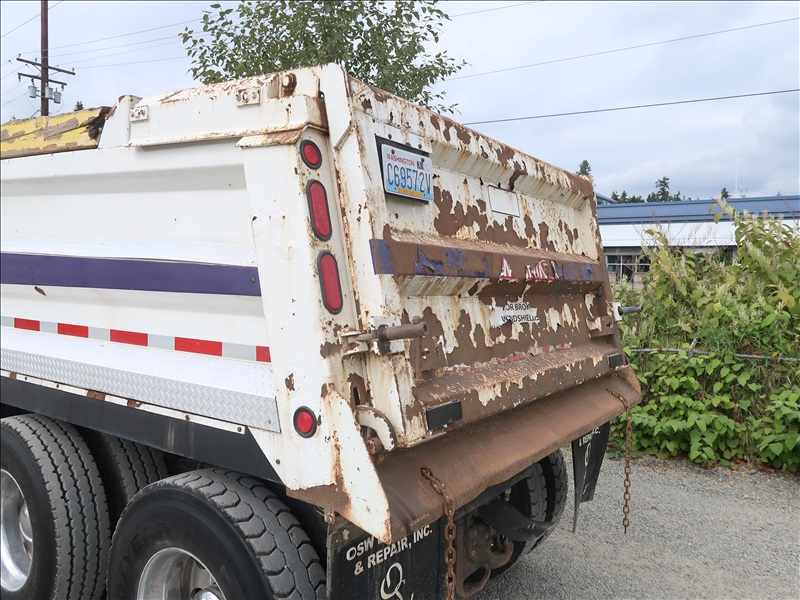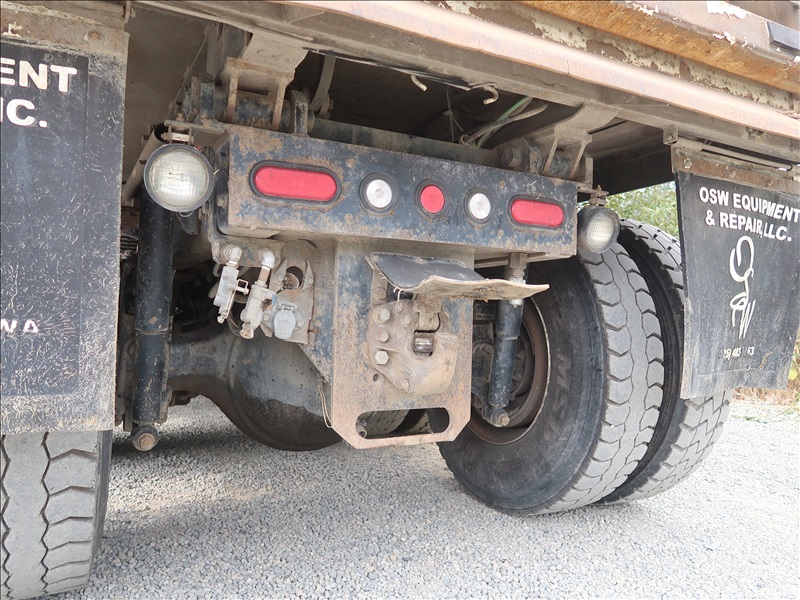 TRI/A DUMP TRUCK, 16' STEEL BOX, HIGH LIFTGATE, DETROIT SERIES 6, 18 SPD, 218" W/B, 13,200 LB FRONT, 46,000 LB REARS, DROP AXLE, PLUMBED FOR PUP