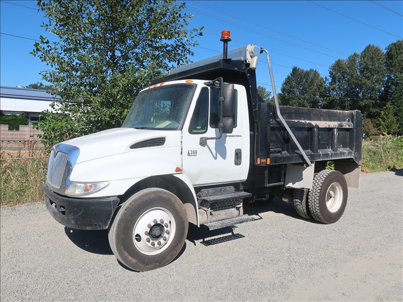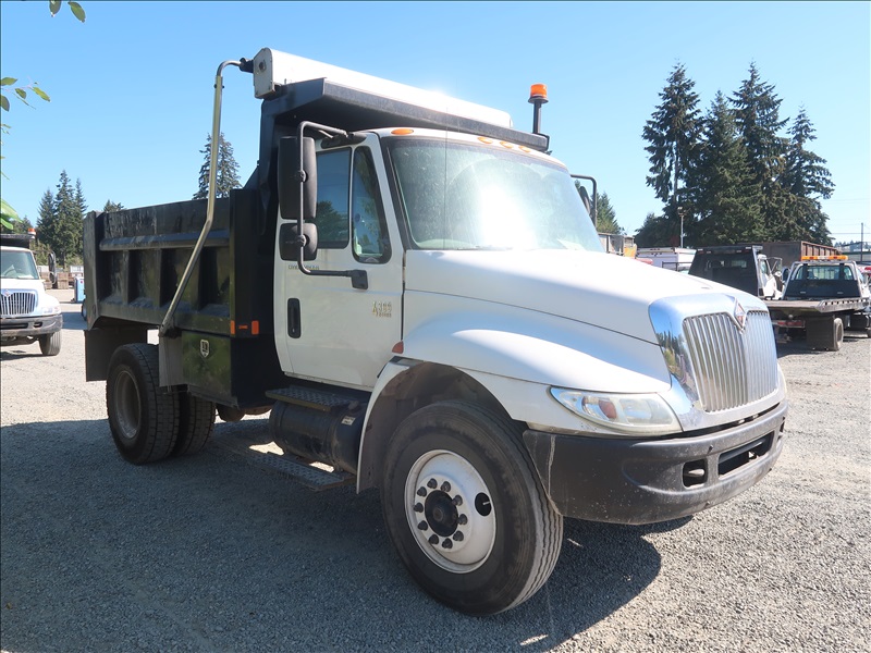 DUMP TRUCK, 10' STEEL BOX, TARP SYSTEM, DT466, 7 SPD, SPRING SUSPENSION, 153" W/B