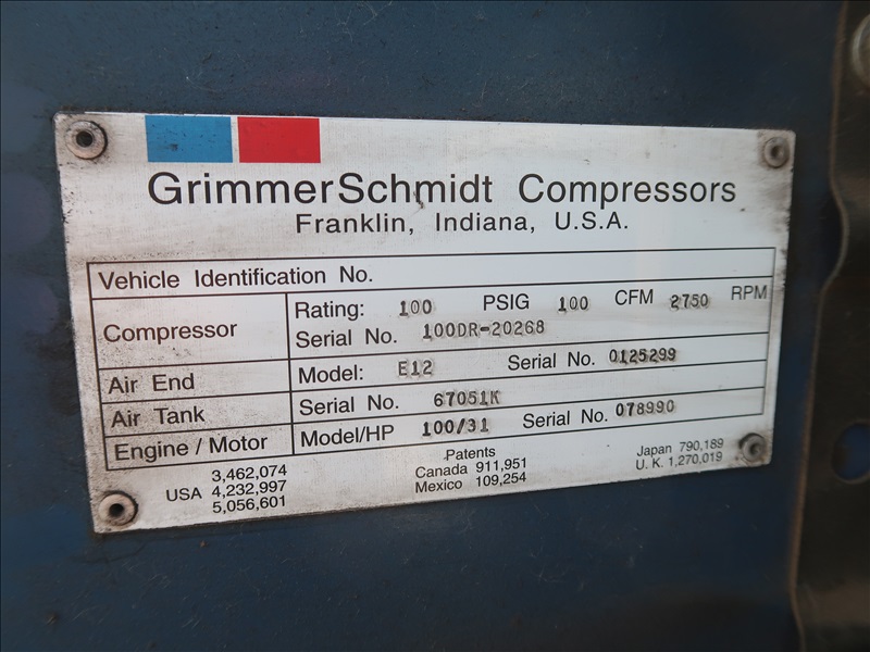 S/A 100 CFM, 100 PSI AIR COMPRESSOR, KUBOTA 4 CYL DIESEL ENGINE, 175/80R13