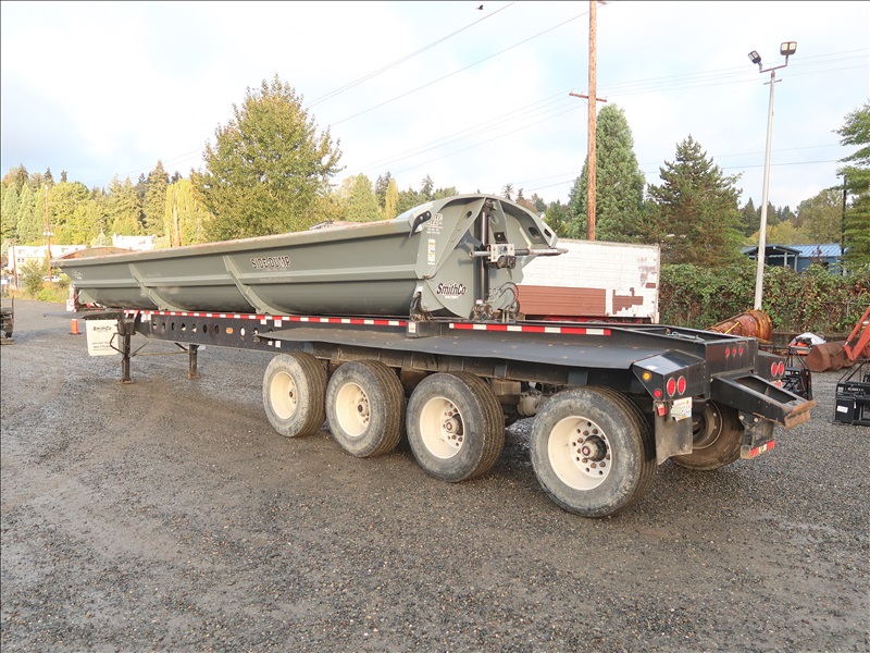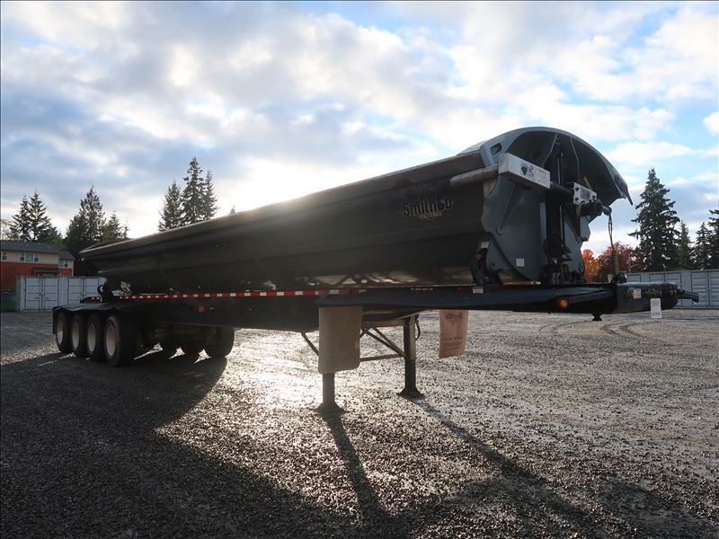 QUAD/A, 49' 100,470 LB GVWR, 36' STEEL BOX SIDE DUMP TRAILER, FRONT & REAR DROP AXLES, RIDEWELL AIR SUSPENSION, TARP SYSTEM, REAR PUSHER, 385/65R22.5