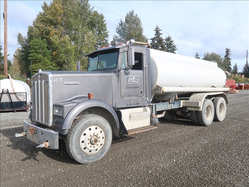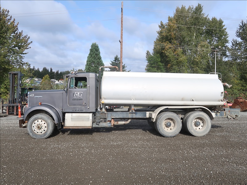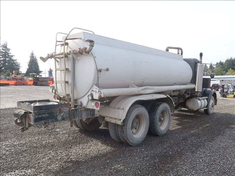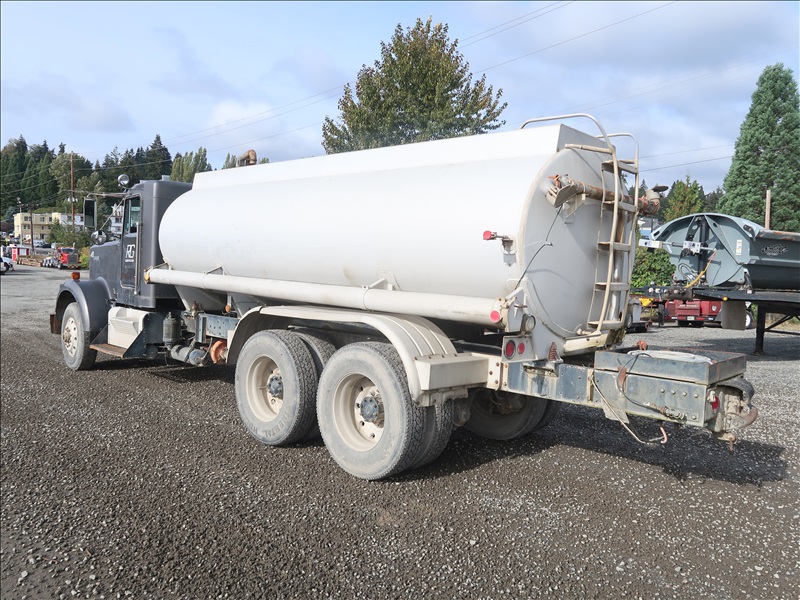 T/A, 4,000 GAL WATER TRUCK, CUMMINS 6 CYL, 13 SPD, ALUMINUM TANK, FRONT/REAR SPRAY, PTO SELF LOADING PUMP (AIR BLEEDS OFF WHEN BRAKES APPLIED)