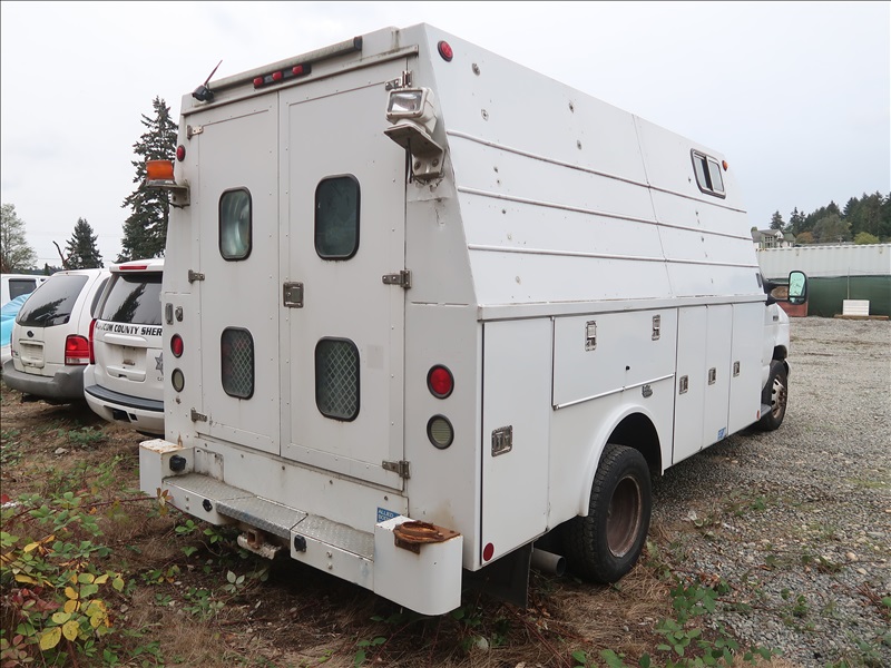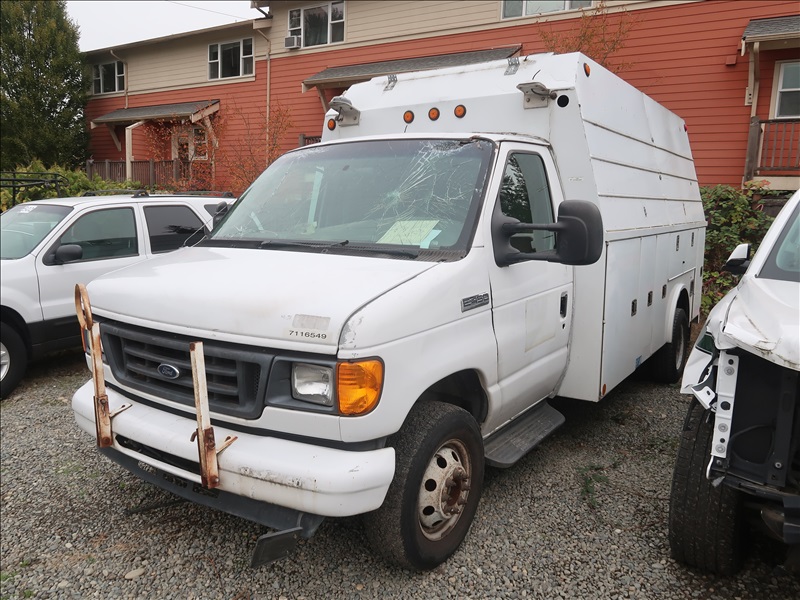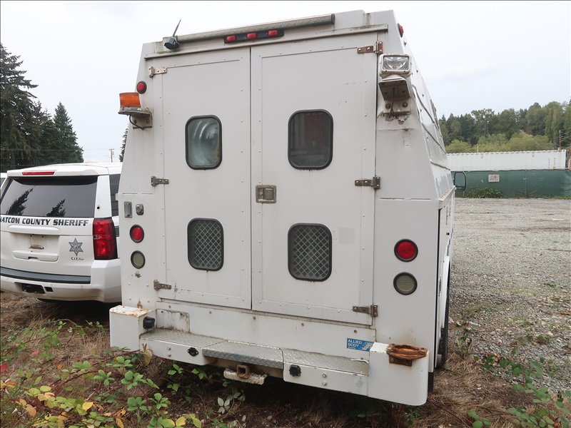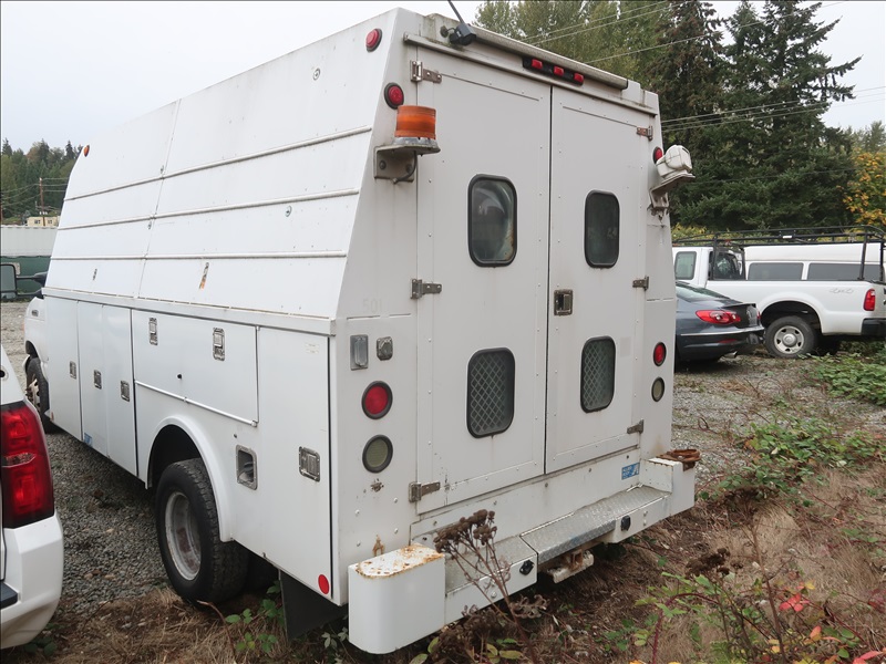 SERVICE BODY, V8 DIESEL, AUTO, 12' ALLIED BODY, SERVICEY BODY (RUNS & MOVES, ACCIDENT DAMAGE, PLEASE PREVIEW)