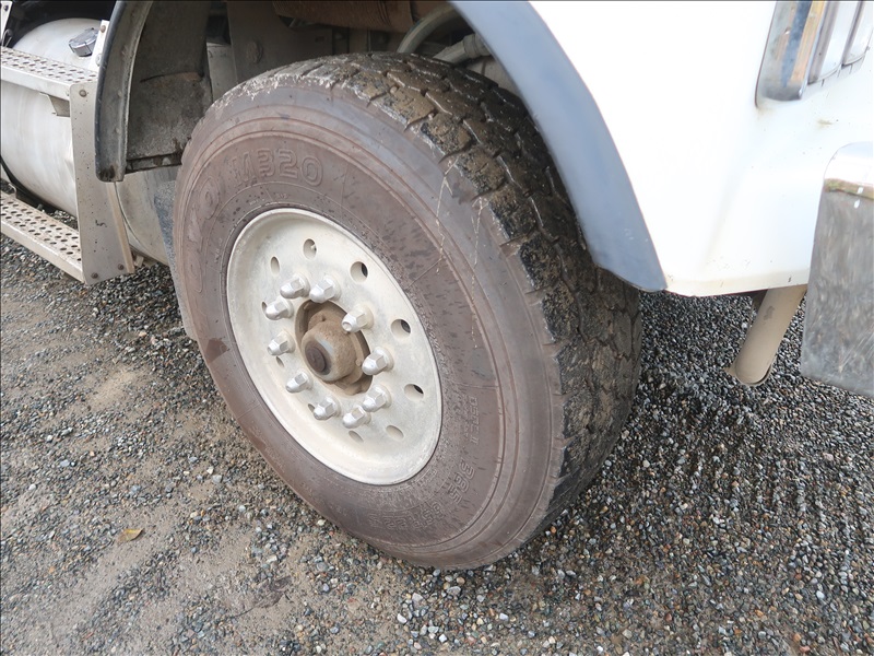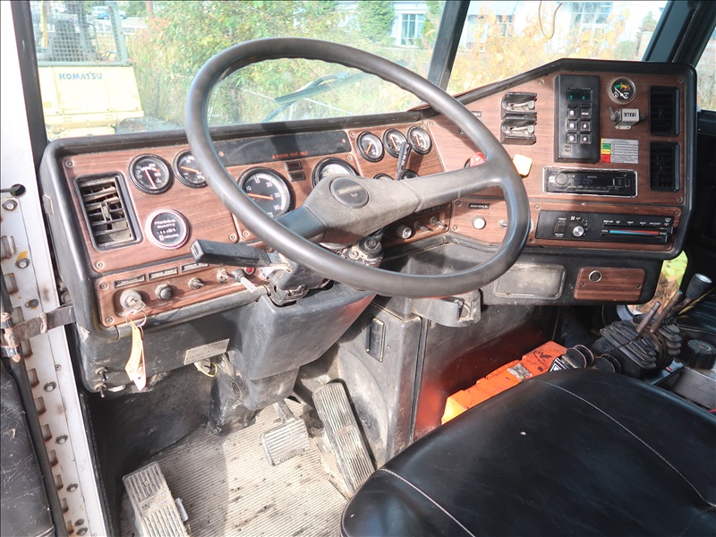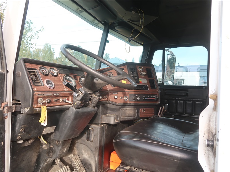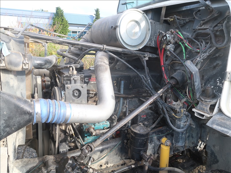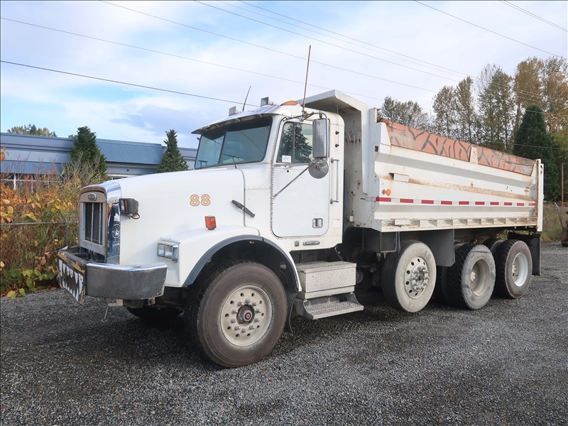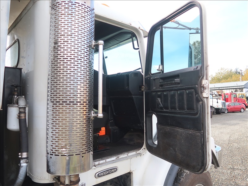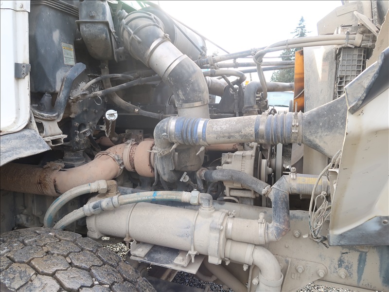 TRI/A DUMP TRUCK, 15' STEEL BOX, ASPHALT GATE, CUMMINS M11-370E, AUTO, CHALMERS SUSPENSION, 195" W/B, 18,000 LB FRONT, 40,000 LB REARS, DROP AXLE, PLUMBED FOR PUP