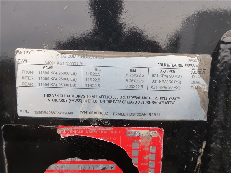 TRI/A, 44', 75,000 LB GVWR SIDE DUMP TRAILER, 37' STEEL BOX, SPRING SUSPENSION, A/B, TARP SYSTEM, 295/75R22.5