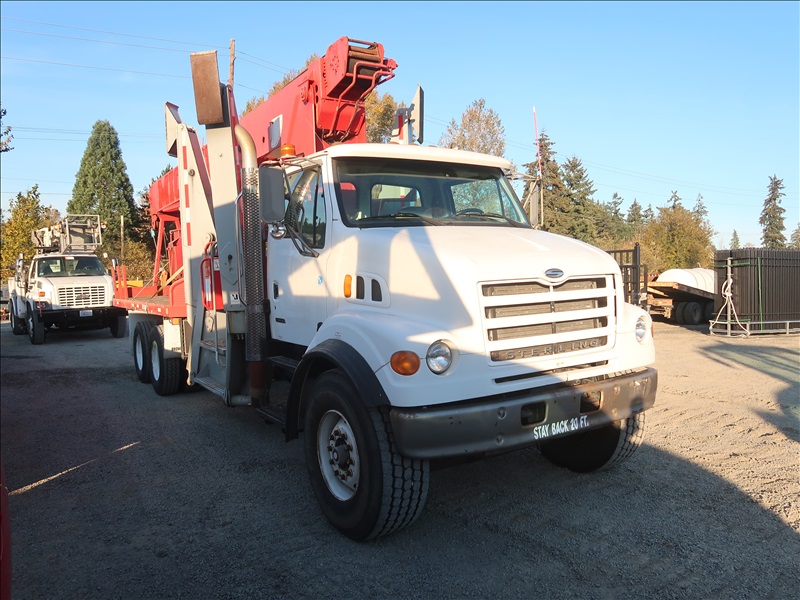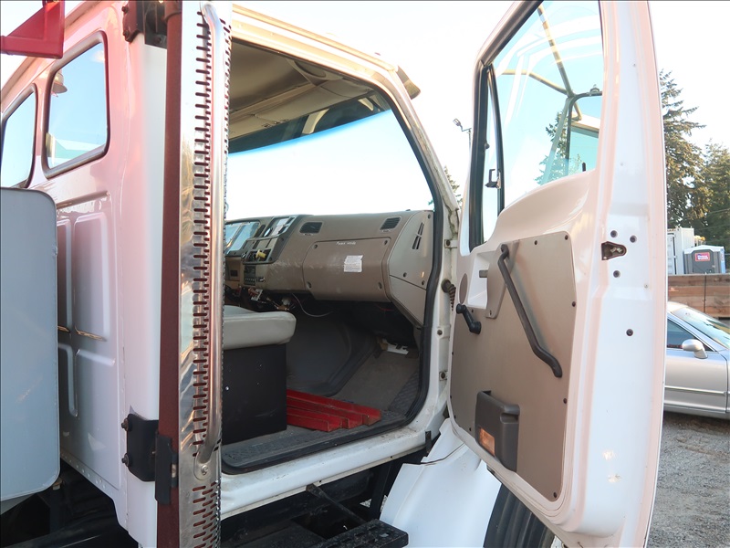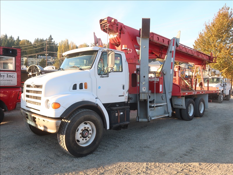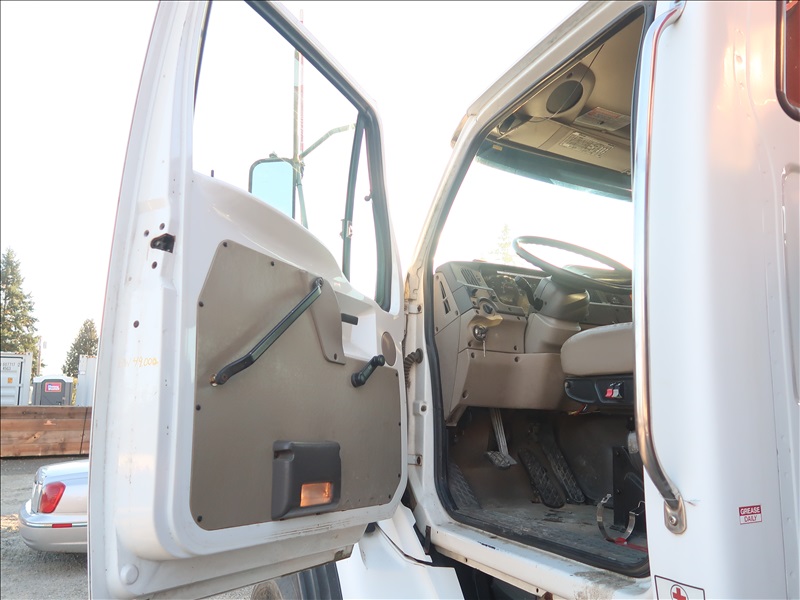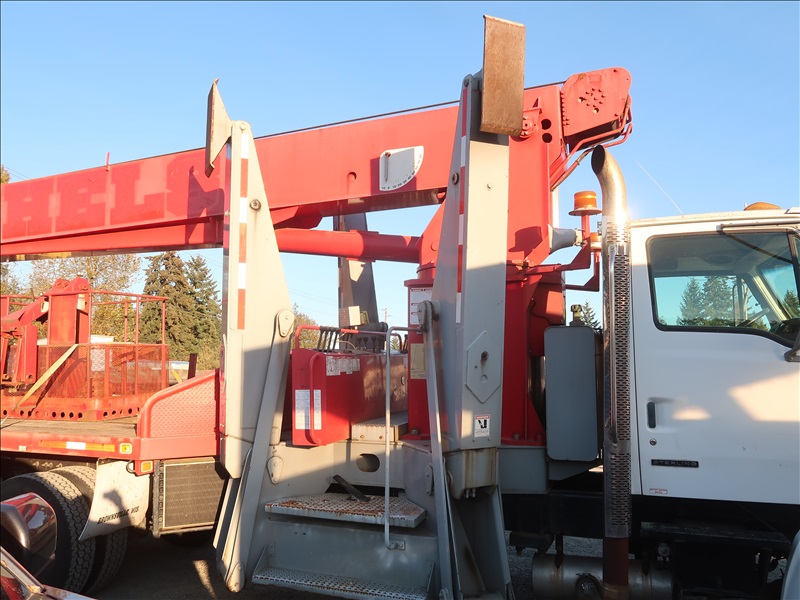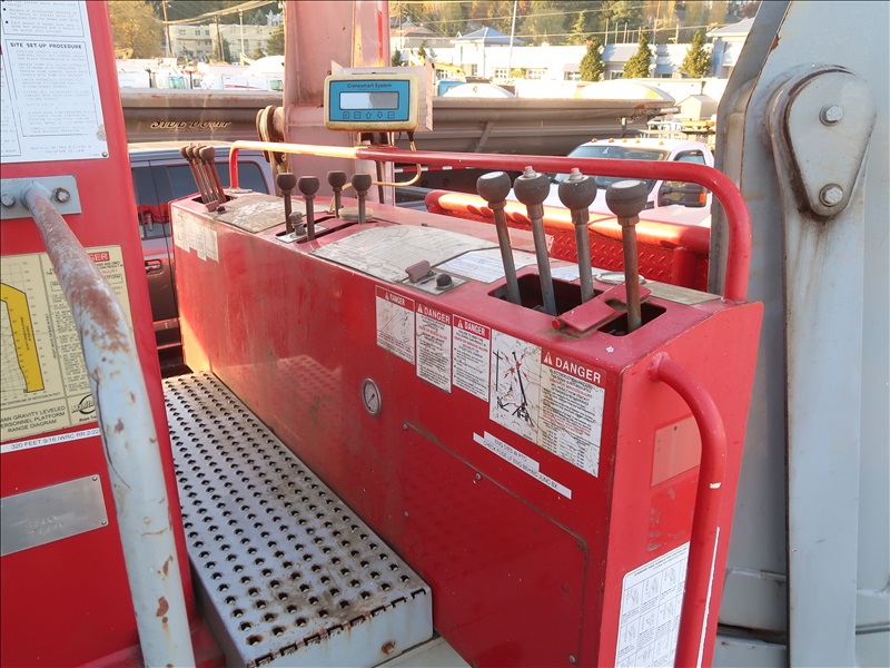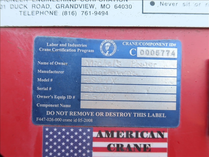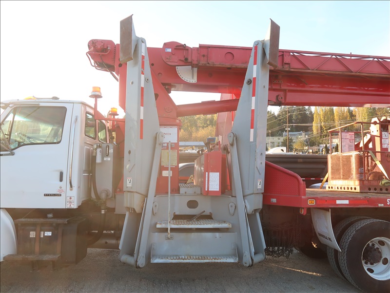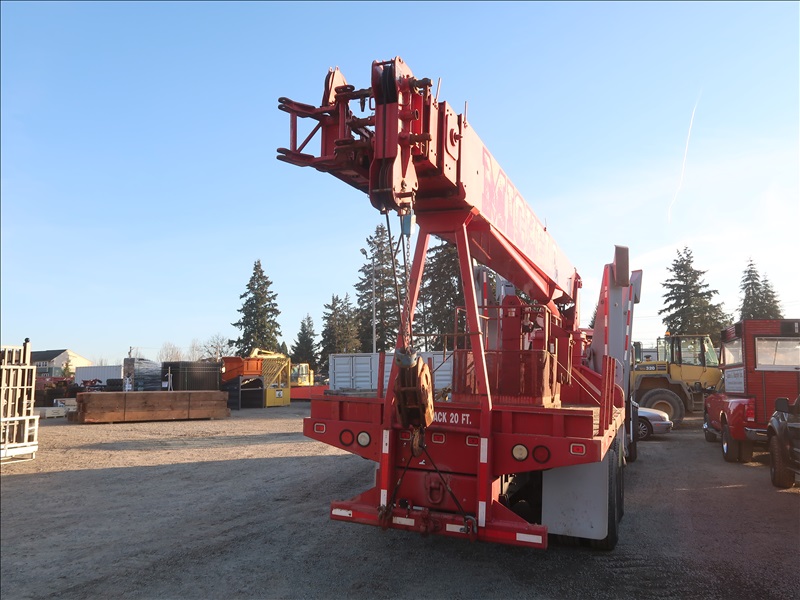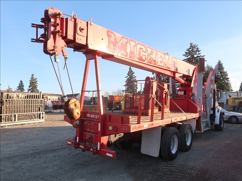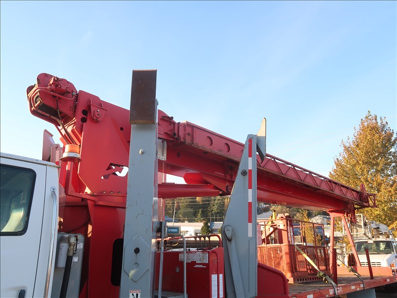 T/A, CRANE TRUCK, CAT 3126, 9 SPD, MANITOWOC PIONEER 2894X 55,000 LB 94' 4-SECTION BOOM, 44' EXPANDABLE JIB, ANTI 2-BLOCK, HOOK BLOCK, HEADACHE BALL, MAN BASKET, ATTACHMENT, STABILIZER, SPRING BEAM SUSPENSION, 20,000 LB FRONT, 40,000 LB REARS, 18' FLATBED