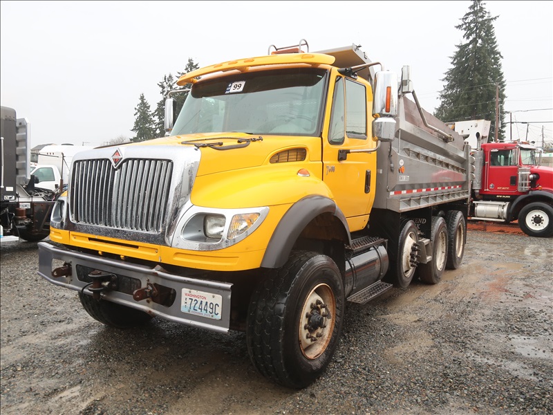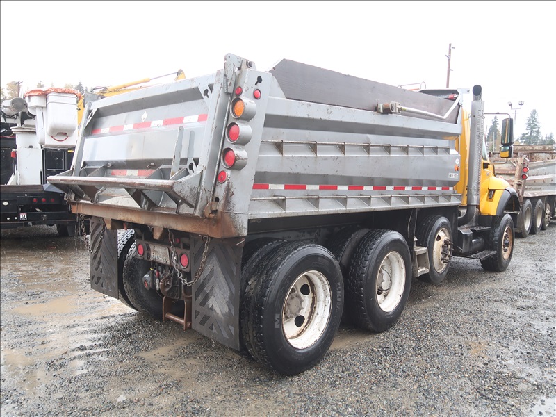 TRI/A, DUMP TRUCK, 14'6" STEEL BOX, TARP SYSTEM, CAT C-13 EATON, AUTO SHIFT, CHALMERS SUSPENSION, 193" W/B, 18,000 LB FRONT, 40,000 LB REARS, DROP AXLE, PLUMBED FOR PUP, BATCH GATES
