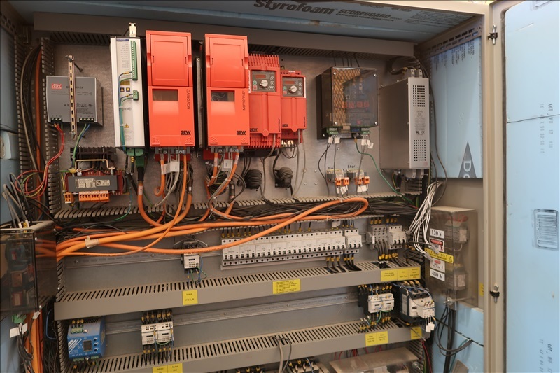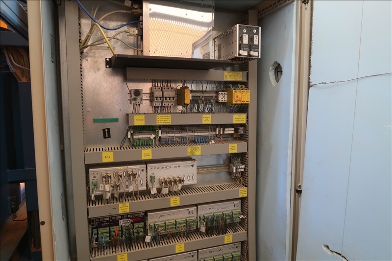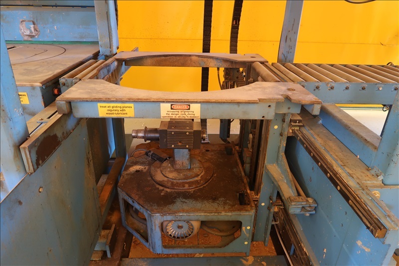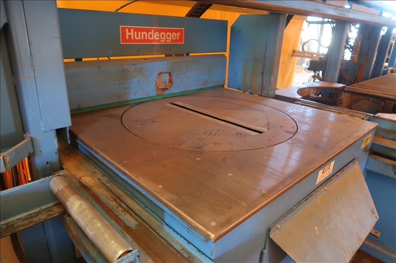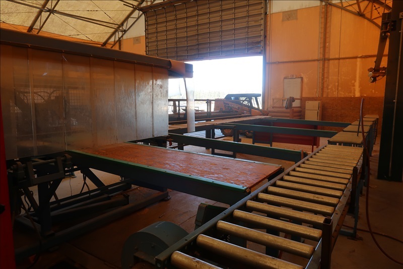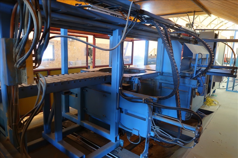 LOG JOINERY MACHINE, 20" MAX DIA, JUMP SAW STATION, UNIVERSAL MILLING STATION W/SINGLE HEAD, DUAL SPINDLE DRILLING STATION, HORIZONTAL CHAINSAW STATION, POWERED INFEED ROLLS, DUAL INDIVIDUAL LOG POSITIONING CLAMPS, (2) EJECTOR CLAMPS, ELECTRIC MOTORS, HYDRAULIC UNIT, CONTROLS & ELECTRICS, 7' 5-STRAND SLAT CHAIN INFEED, 35' OUTFEED TABLE W/KICK OUT