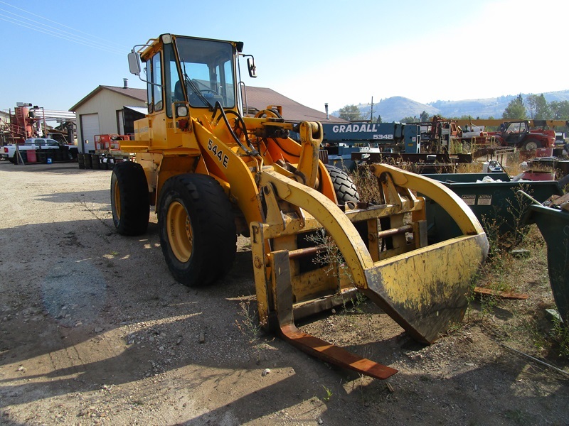 RUBBER TIRE LOADER, LOG FORKS W/TOP CLAMP, JOHN DEERE 6-CYLINDER TURBO DIESEL ENGINE, POWER SHIFT TRANSMISSION, 17.5-25 TIRES