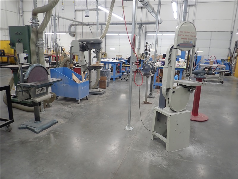WILTON DISC GRINDER, BANDSAW, VISE, DRILL PRESS, GRINDERS & MISC.