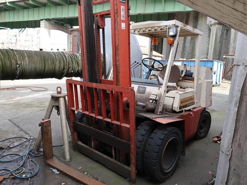 8,000 LB CAP. DUAL SOLID TIRED FORKLIFT, 2-STAGE MAST, SIDE SHIFT, PROPANE (NEEDS WORK)