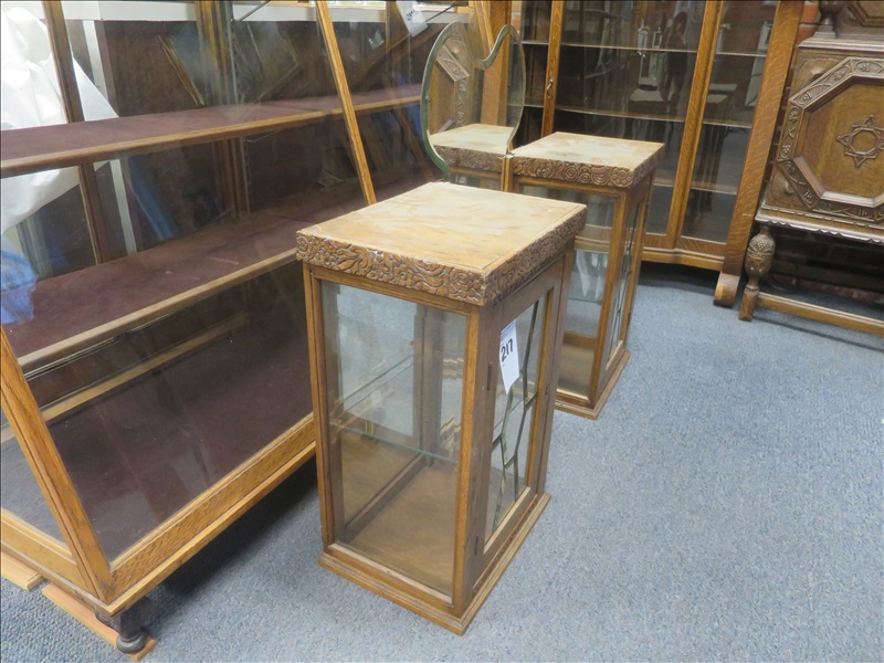 ANTIQUE WOOD HUTCH, 46"W X 26"H X 12-3/4"D W/19-1/2"W X 35"H MIRROR (END BROKEN)