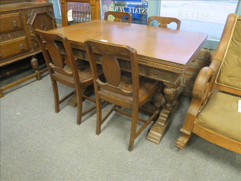 LOT, ANTIQUE TABLE, 50" X 33" W/(2) 13" LEAVES & (4) CHAIRS