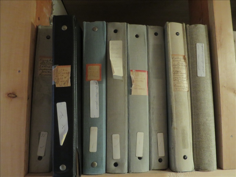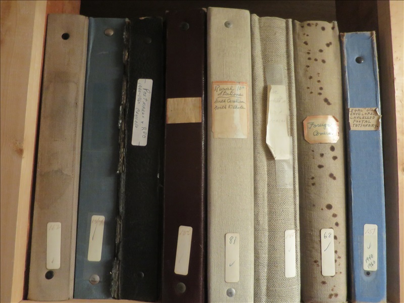 LOT, ASSORTED STAMPS W/ALBUMS ON THIS SHELF (THE SHELF IS DEEP)