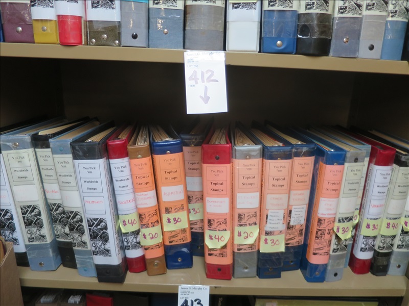 LOT, ASSORTED STAMPS W/ALBUMS ON THIS SHELF