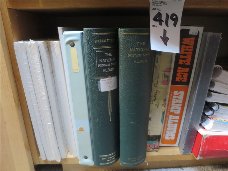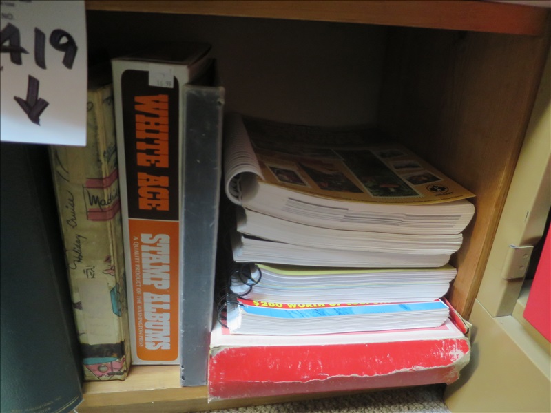 LOT, ASSORTED STAMPS W/ALBUMS ON THIS SHELF