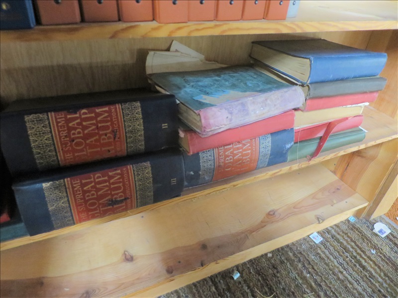 LOT, STAMPS W/ALBUMS ON THIS SHELF