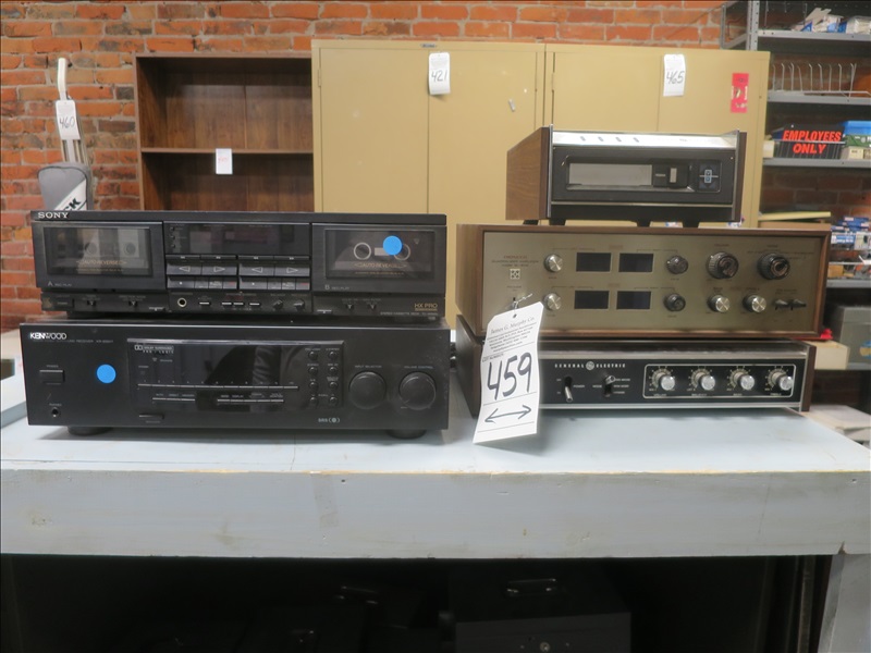 LOT, KENWOOD KR-200HT RECEIVER, SONY TC-WR810 TAPE PLAYER, GE AMP, GE 8-TRACK & PIONEER QL-600 AMP