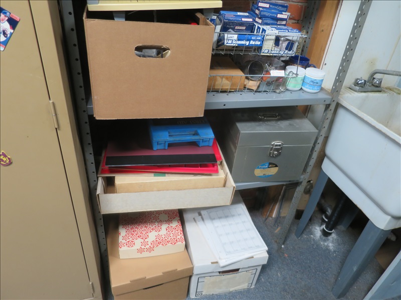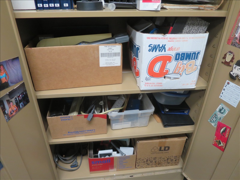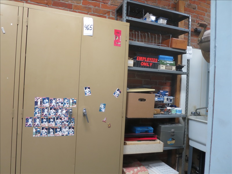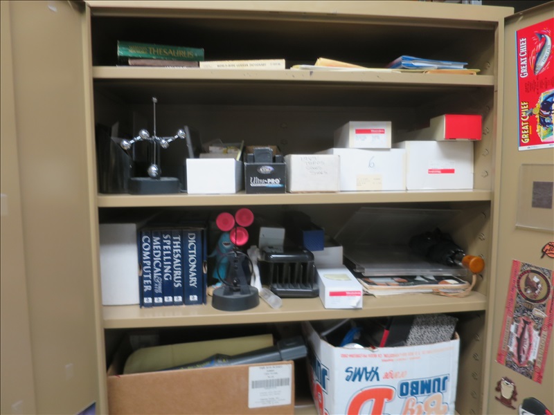 LOT, 2-DOOR CABINET, METAL SHELF & CONTENTS